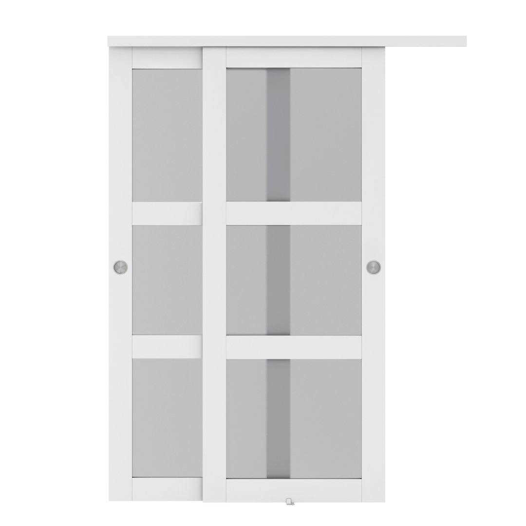 CALHOME 80 in. 3-Lite Frosted Tempered Glass Sliding Double Bypass Closet Doors with Installation Hardware Kit