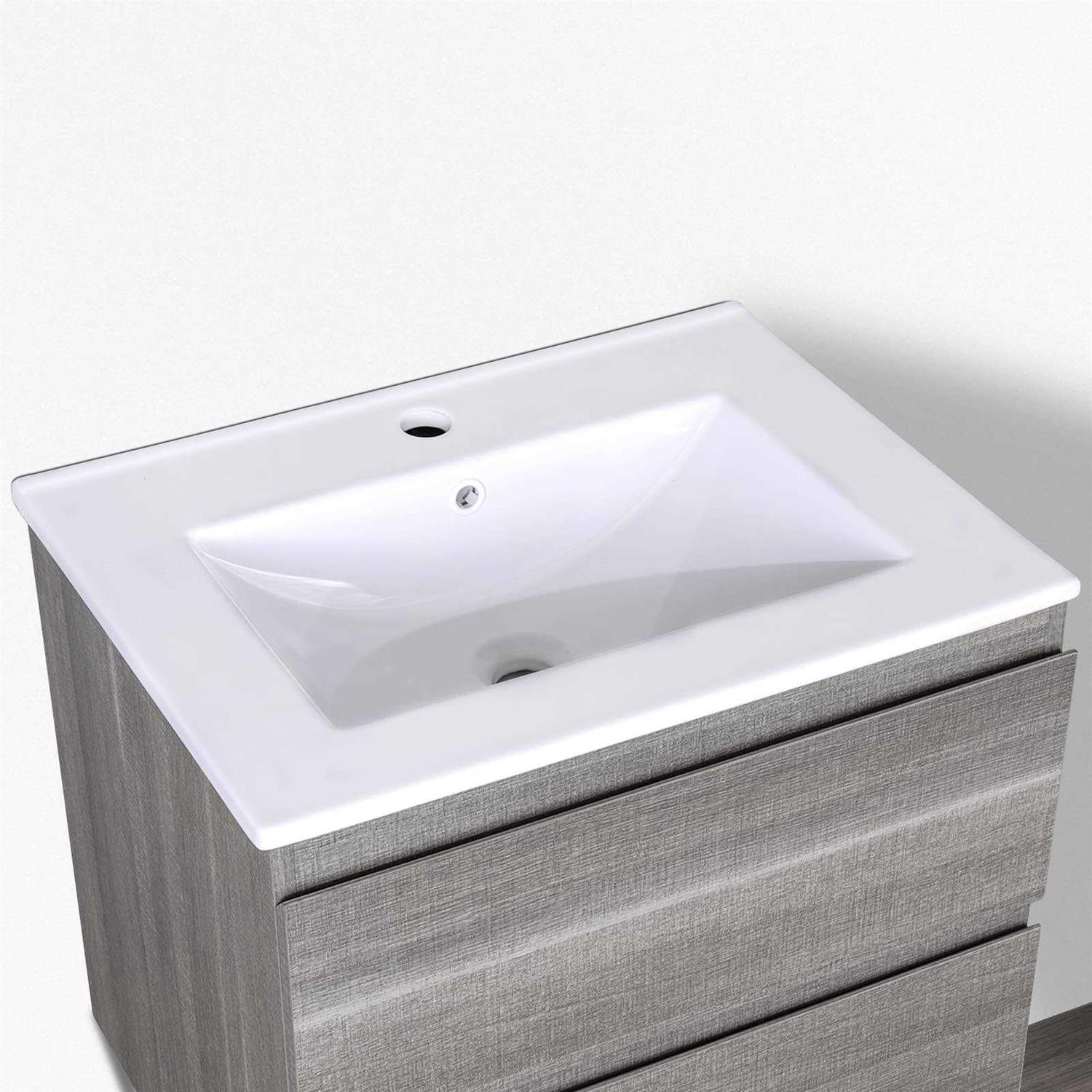 KSWIN 24 x18.5 Drop-In Bathroom Sink Rectangle Porcelain Ceramic Bathroom Vanity Top Vessel Sink White