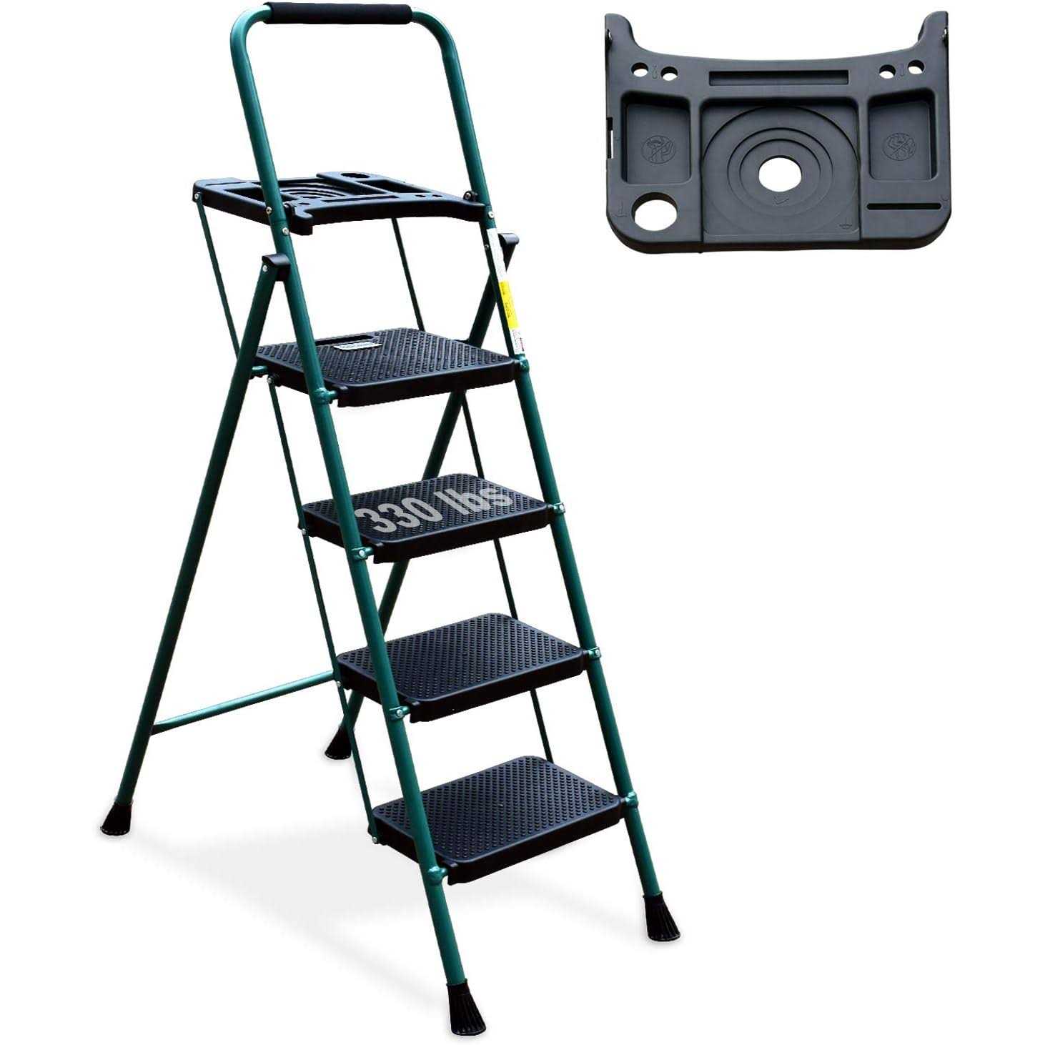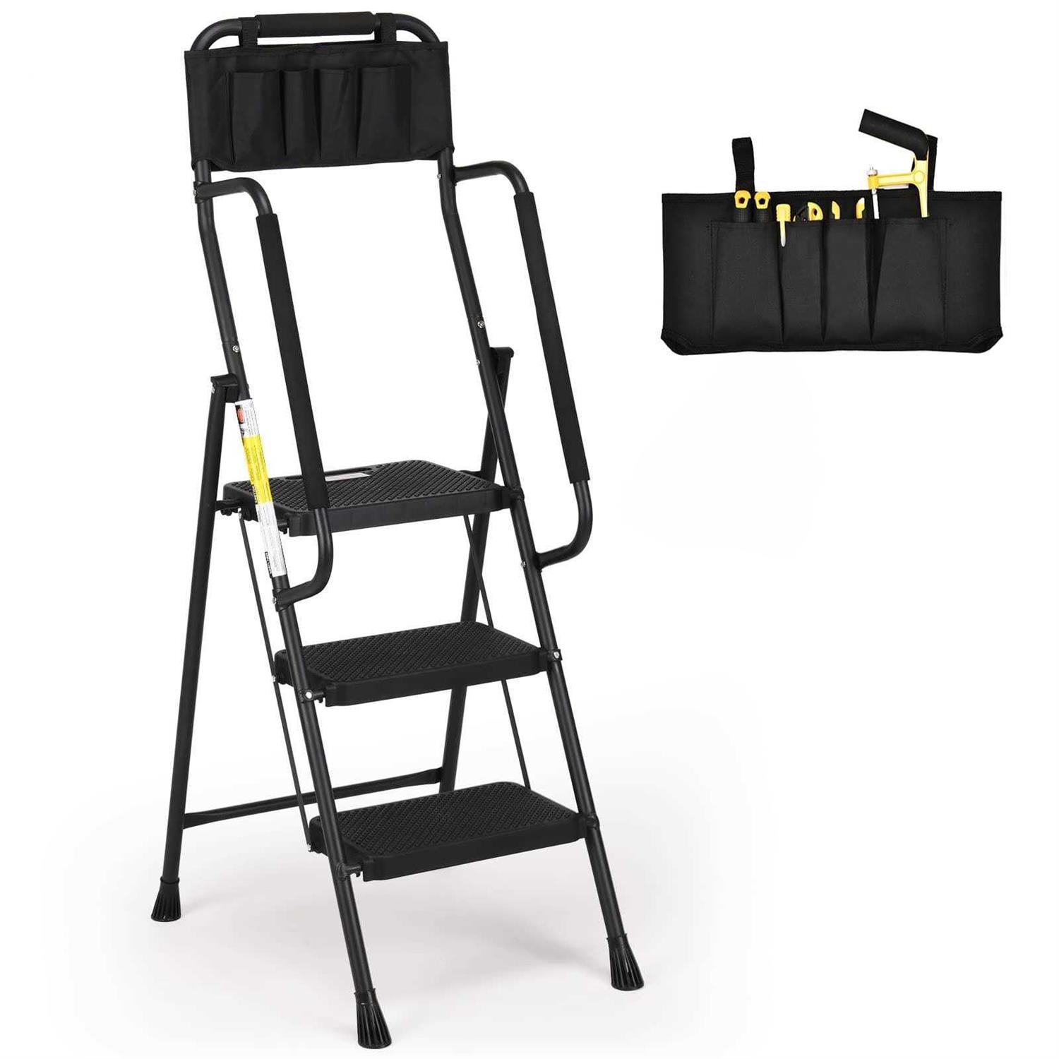 HBTower 4 Step Ladder with Handrails Folding Step Stool with Attachable Tool Bag & Anti-Slip Wide Pedal for Home Kitchen Pantry Office