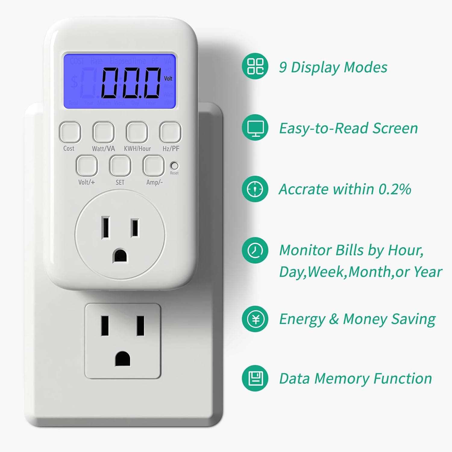 HBN Electricity Usage Monitor LCD Plug in Power Meter Digital Cost Watt/VA KWH/Hour Hz/PH Voltage Amp Meter