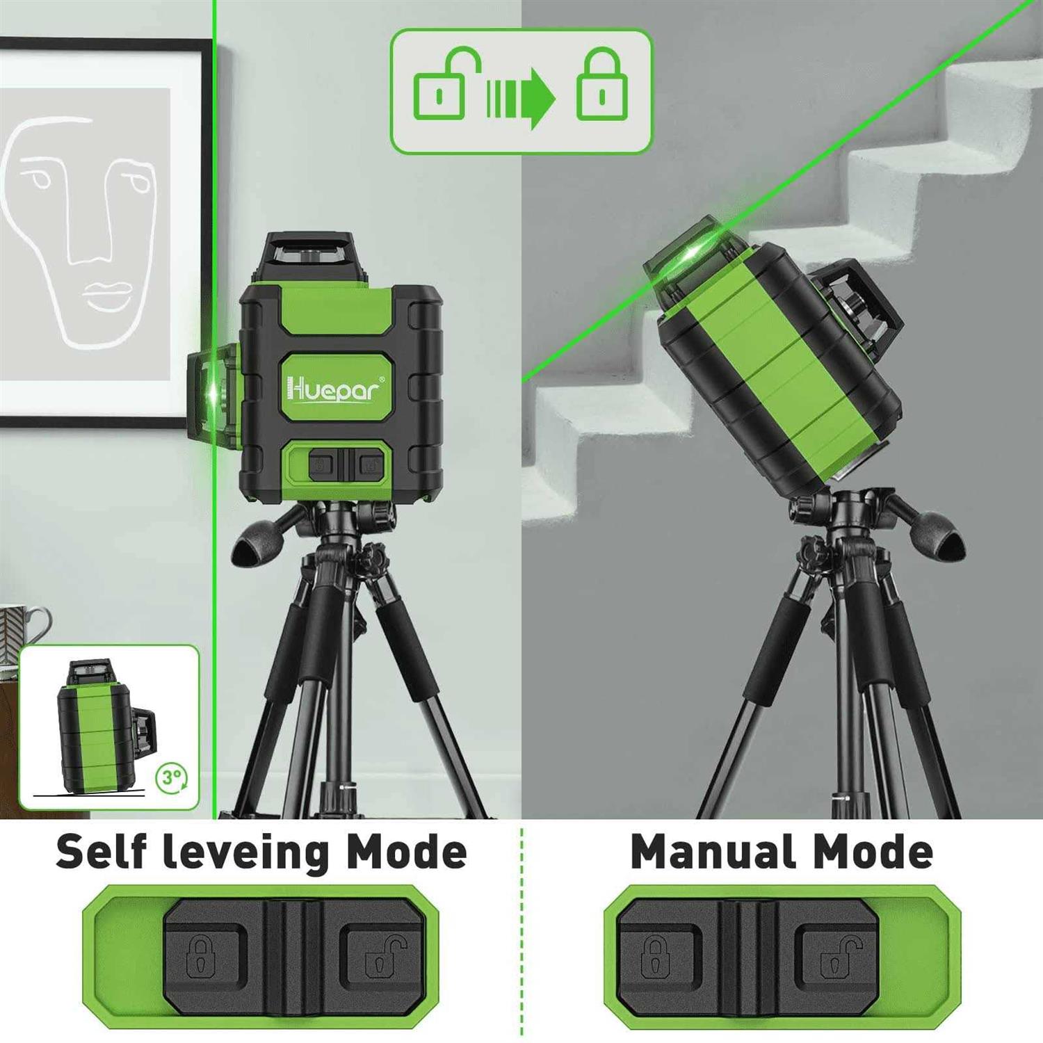 Huepar Green 100-ft Self-Leveling Indoor/Outdoor Cross-line Laser Level with Cross Beam B011G