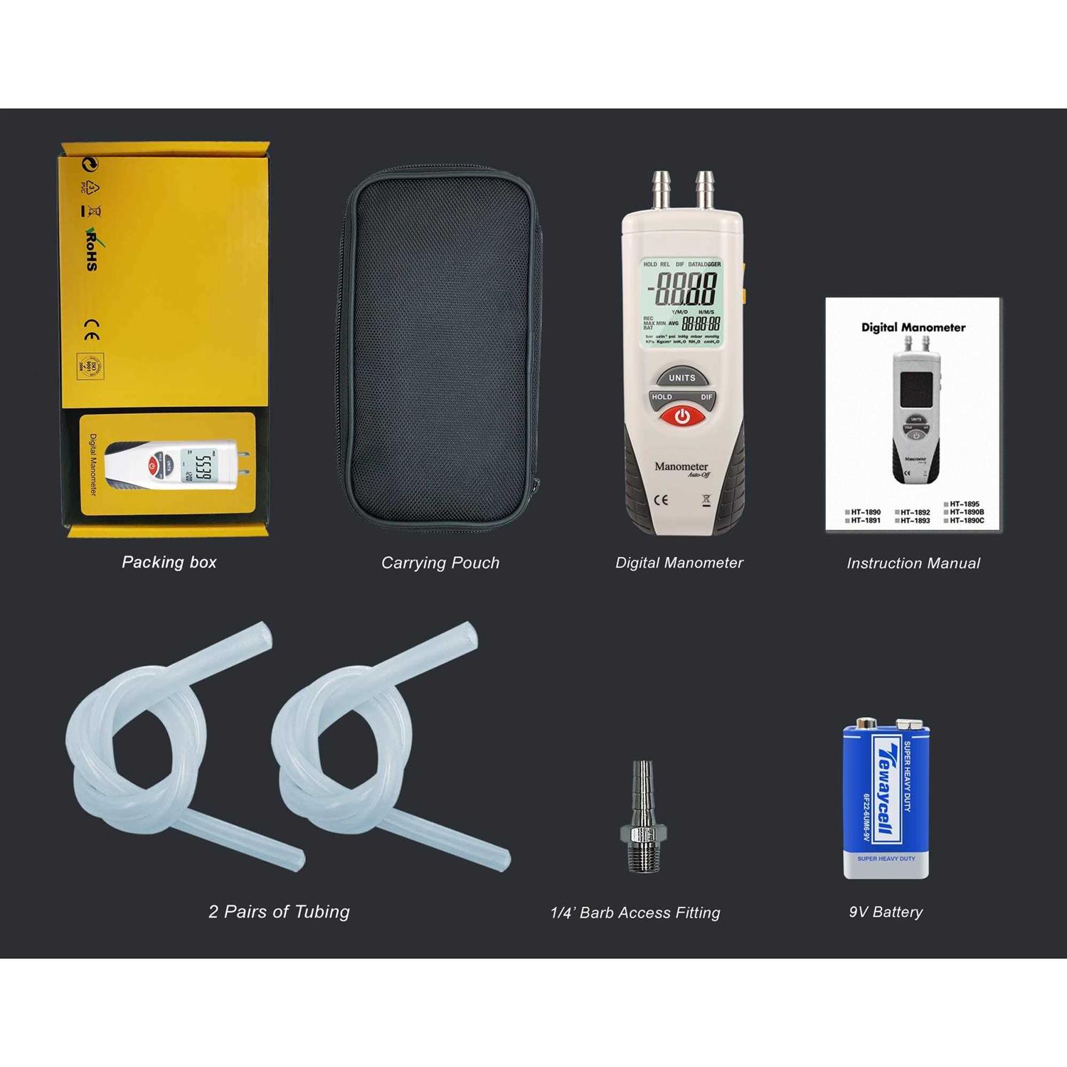 Hti-Xintai Digital Manometer Dual Port Air Pressure Meter Pressure Gauge HVAC Gas Tester
