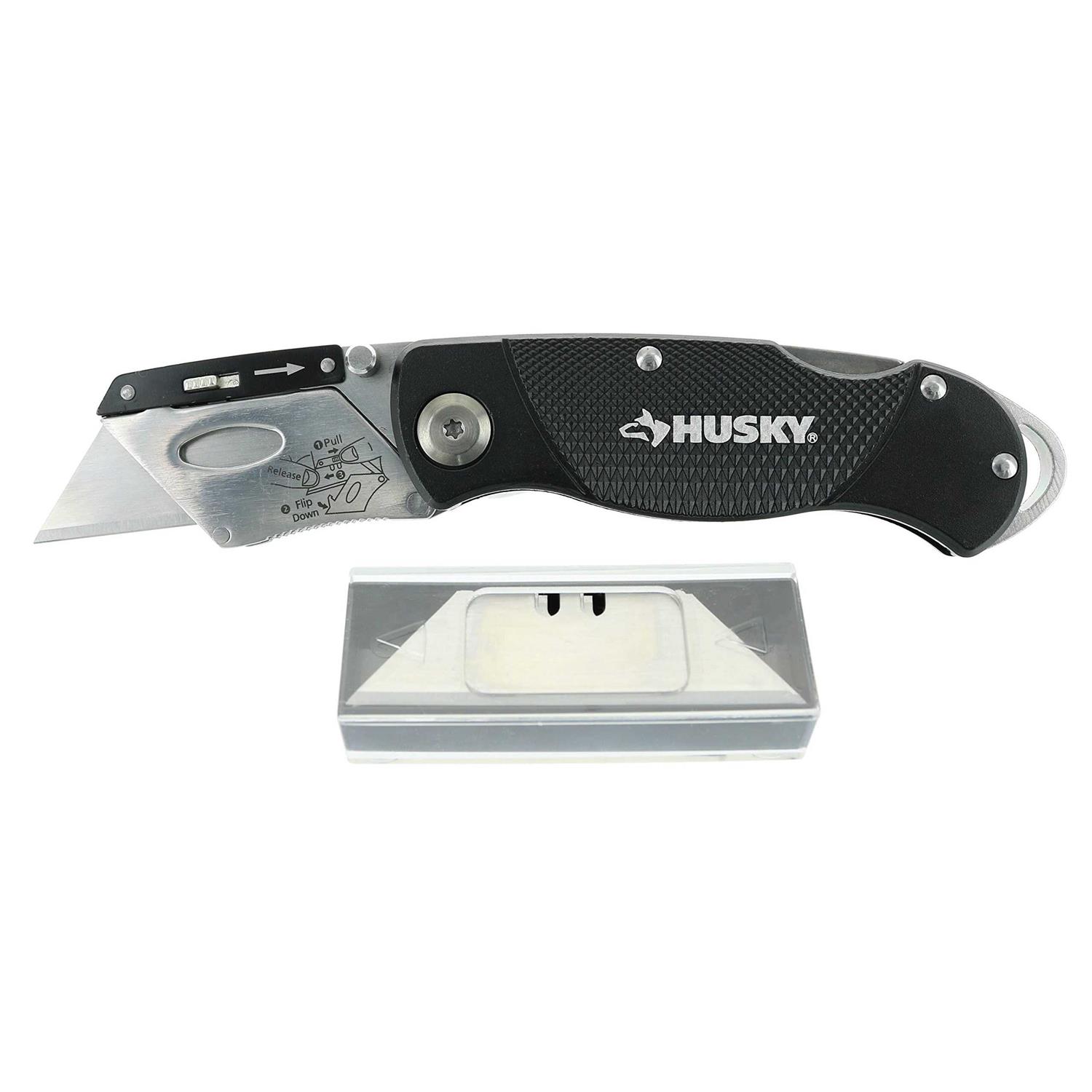 Husky 21113 Folding Sure-Grip Lock Back Utility Knife w/ 10 Disposable Blades Included