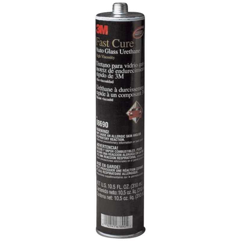One of the fastest curing one-part urethanes on the market. 3M Fast Cure Auto Glass Urethane, 08690, has a ten-to-twenty minute work time and is designed for windshield bonding and stationary glass attachment.