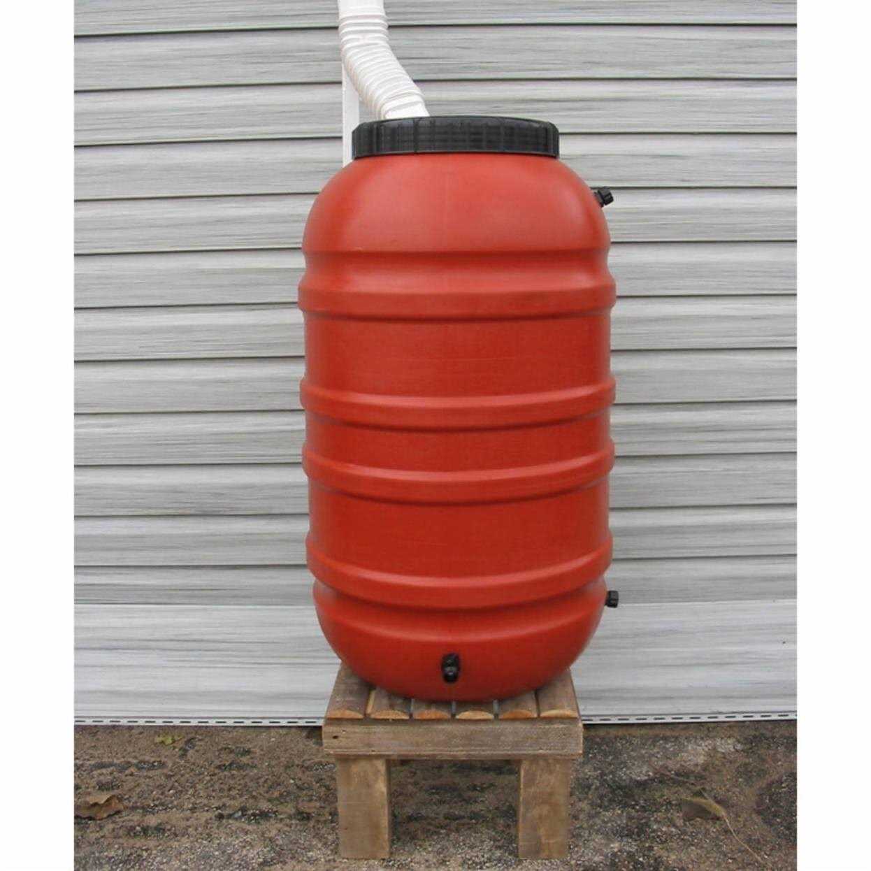 This terracotta 55 gallon reconditioned rain barrel is made from high-density polyethylene (HDPE). Rain barrels are containers that collect and store rainwater draining from your roof. This barrel collects rain water to provide an ample supply of free soft water that contains no chlorine, lime or calcium for gardens, flower pots, and car and window washing.