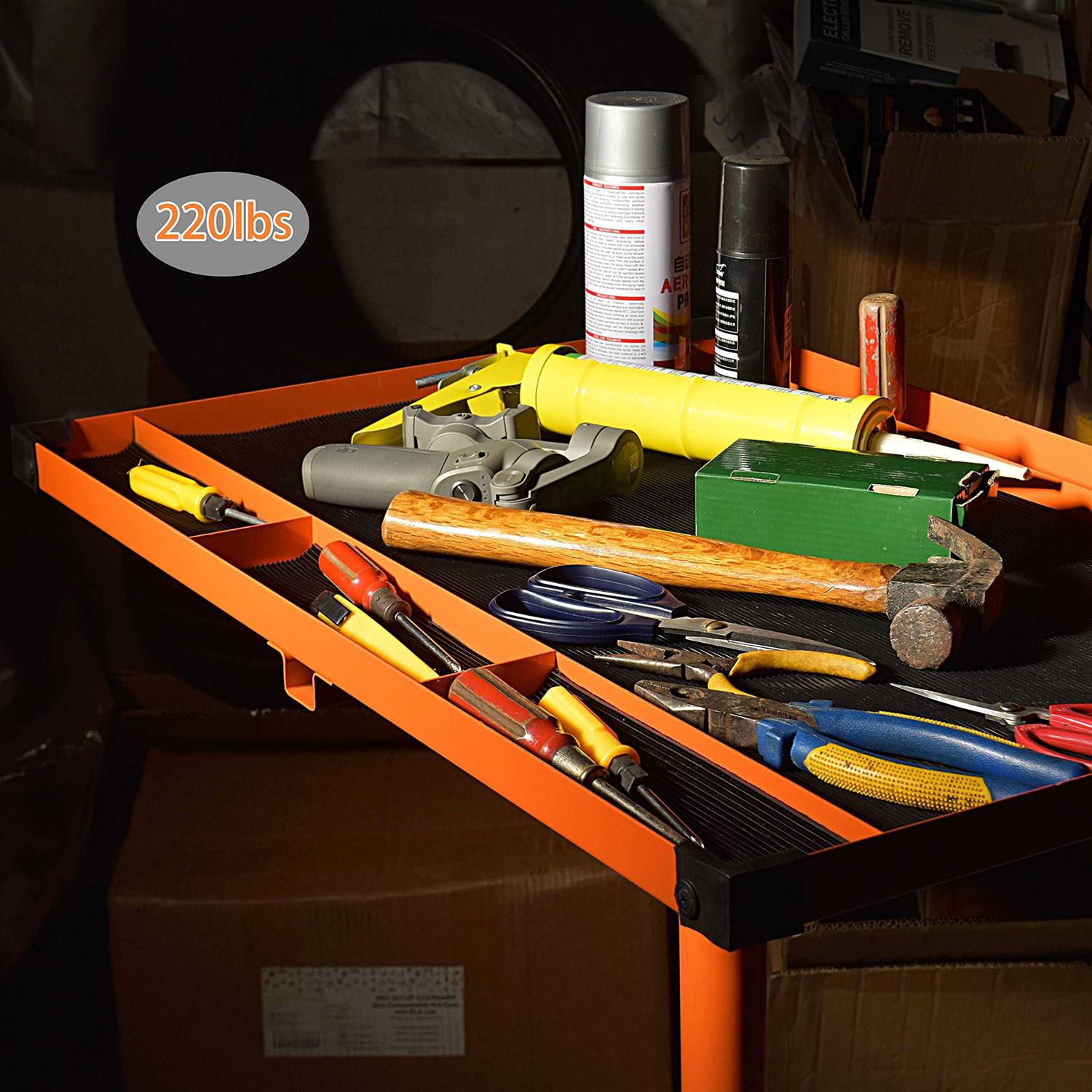 Aain Mechanic Rolling Tool Tray with Drawer Work Table, 36.6-49.6 in, Orange
