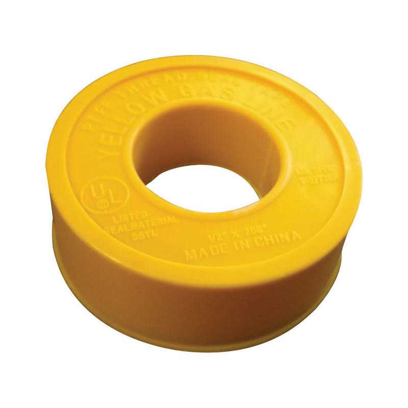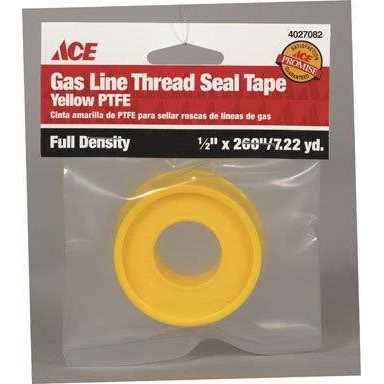 Brand Name: Ace *Color: Yellow *Sealant Tape Length: 260 in. *Sealant Tape Width: 1/2 in. *Product Type: Thread Seal Tape *Container Size: 0.07 oz. *Packaging Type: Bagged *Material: PTFE *High density for gas line *Self lubricating leak proof sealant