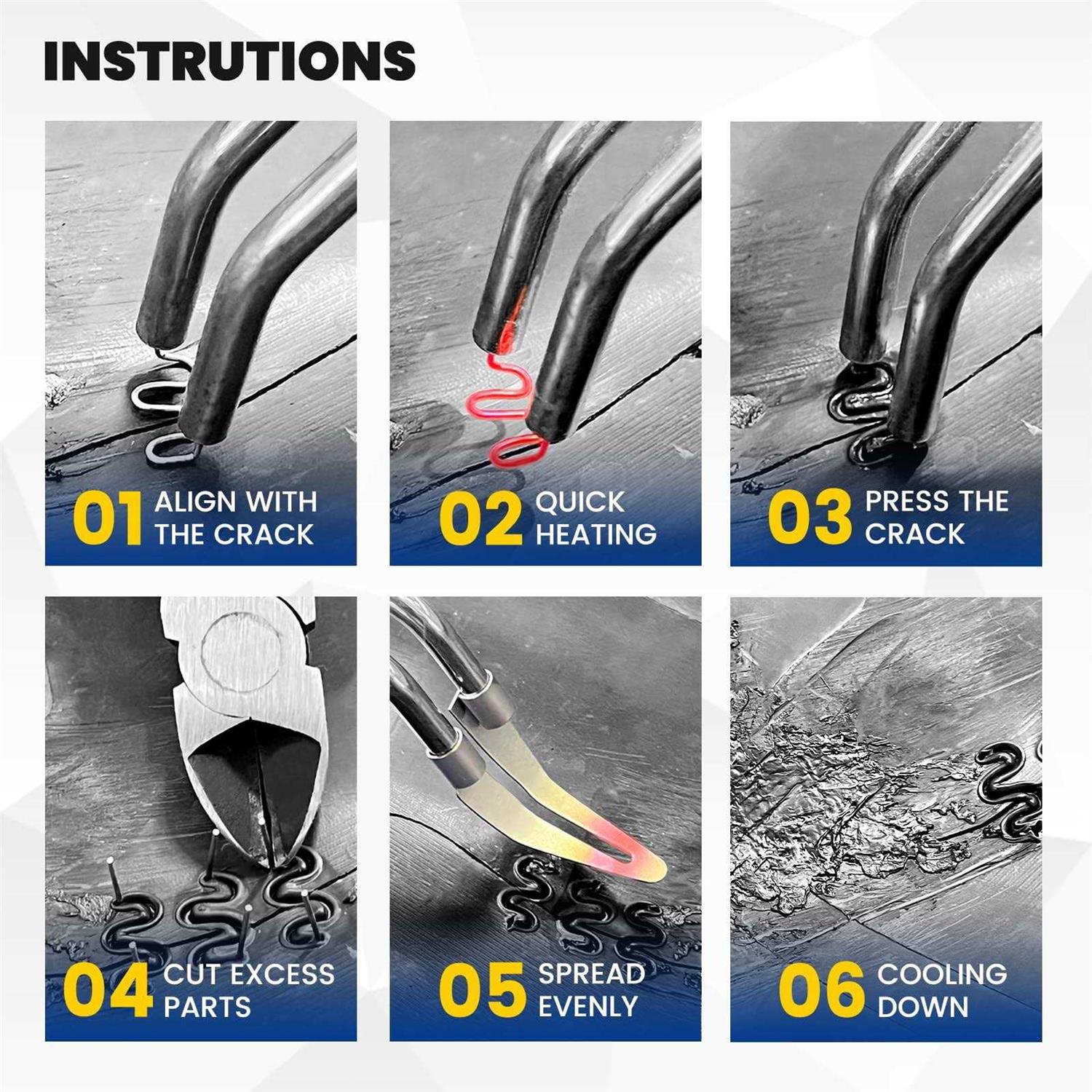 Features: This welding repair tool kit is designed to repair plastic parts of the car. Restore your broken parts, prolong its service life. Strong for shock and twist after repairing. The rubber handle has a comfortable grip and will not feel tired for a long time holding. Quick and easy operation. No training required. Learn to use in seconds. Various types of nails to meet your different needs. Specification: Material: ABS + Brass Plug:US Plug Voltage:110V Power:100W(With overheat protection) Machine Color:Yellow Cable Length:59in(150cm) Package Dimensions:15.94*11.02*2.95in(40.5*28*7.5cm) Weight:2.03Lb(920g) Package List: 1 * Plastics Welding Machine 1 * Utility knife 1 * Plier 1 * Carry Case 1 * English Instructions 100 * Flat Staple 100 * Outside Corner Staple 100 * Inside Corner Staple 100 * Wave Staple