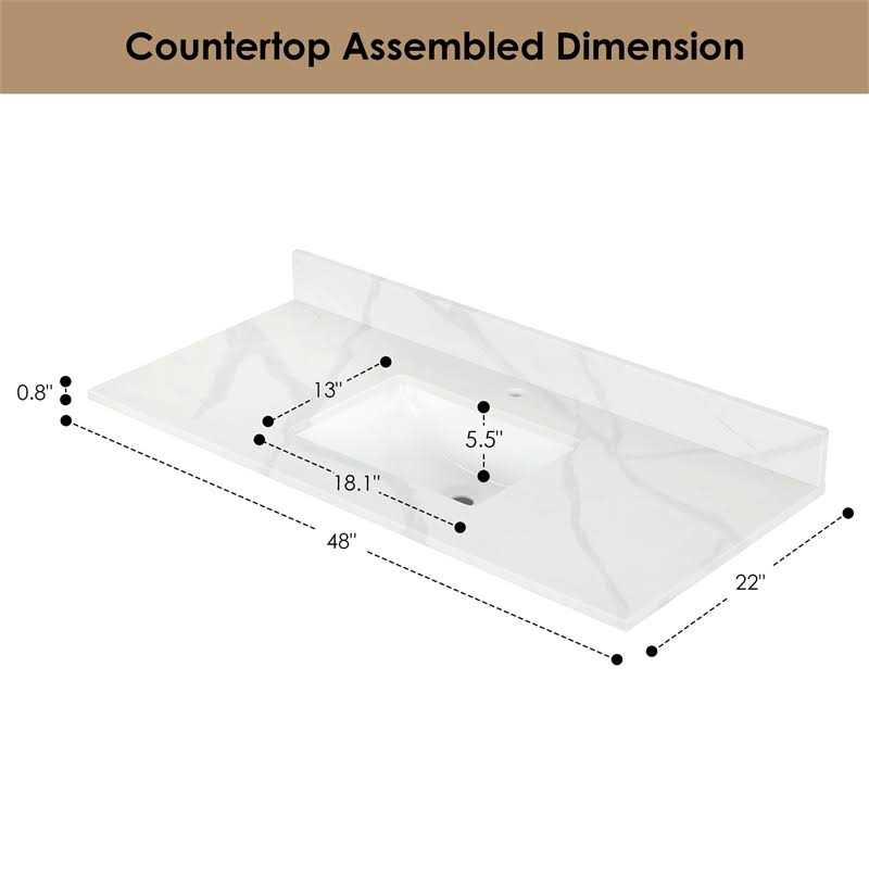 Altair Design Arbios 48″ Quartz Stone Vanity Top in Calacatta White
