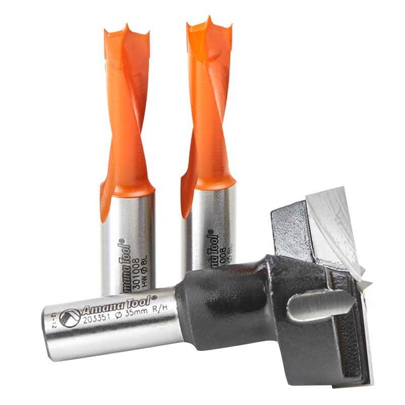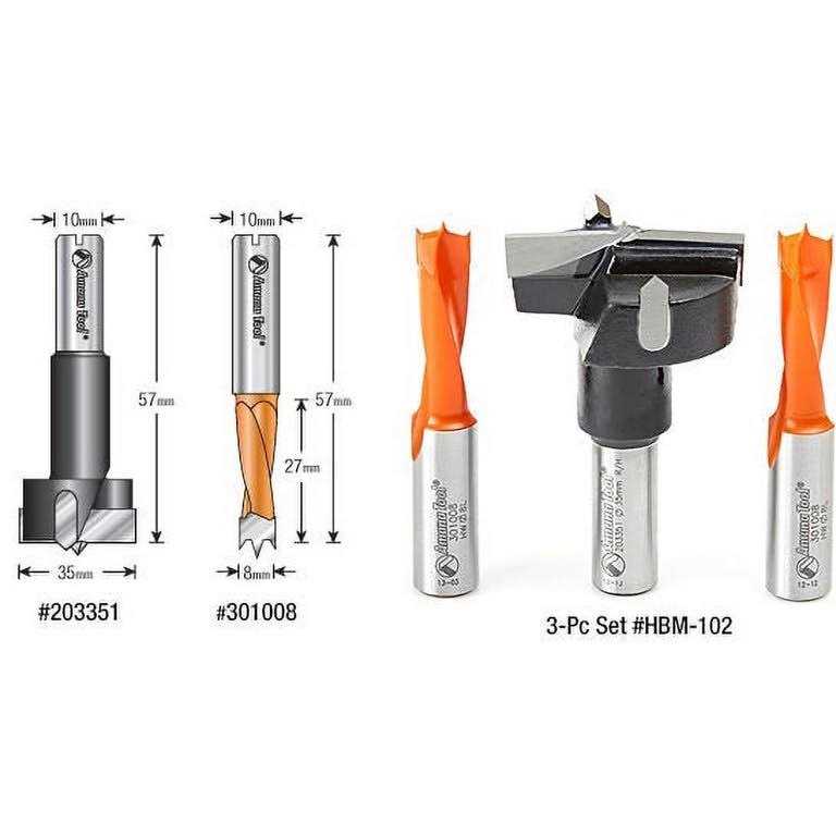 Amana Tool – HBM-102 3-Pc Hinge Boring 57 Long x 10mm Shank Carbide Tipped Bit Set