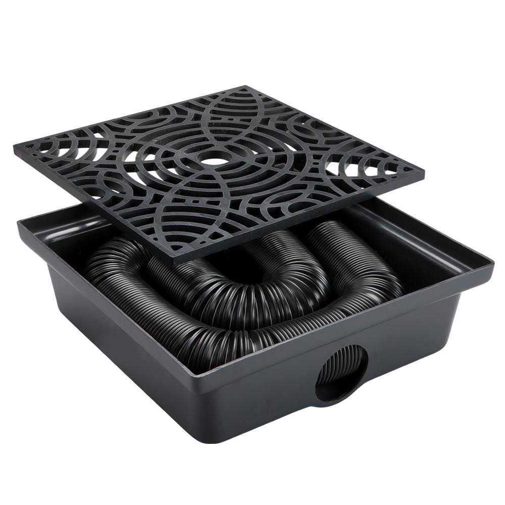 The Amerimax StealthDrain Low Profile Catch Basin allows you to move damaging rainwater away from your home with the look of a buried drainage system, without the cost. The low profile design creates an unobtrusive look and can be covered with mulch, straw or stones for a subtle appearance, with no digging required. Simply cut the included 8′ length of 2″ pipe to your desired length, screw into the supplied drain holes, extend the pipe to direct the rainwater in your desired direction, and bury under mulch, stone, or pine straw. Be sure to utilize both drain holes when utilizing under a 3″ x 4″ downspout due to increased water volume. Diverts damaging rainwater away from your foundation No digging required! Low-profile design can be hidden by covering with mulch, straw, or other landscape cover for an unobtrusive look Compatible with all standard residential downspouts (2″x3″, 3″x4″, and round) Made from durable resin to withstand the outdoor elements Includes 8′ length of 2″ flexible pipe to direct rainwater in any direction Includes two drain pipe knockouts and a cap to close off one hole if only using one drain location.
