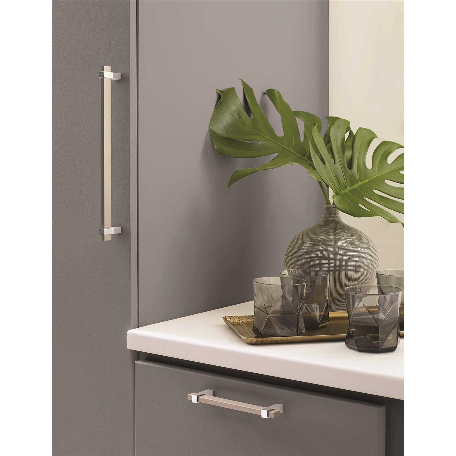 The inviting lines of Mulino are a testament to the allure of simplicity. Blending clean geometry with a split-finish assembled design, the collection’s minimal forms unite into a work of artistry. Amerock’s finish marries the velvety warm glow and blush undertones of silver champagne with the shimmering mirrorlike nature of polished nickel.