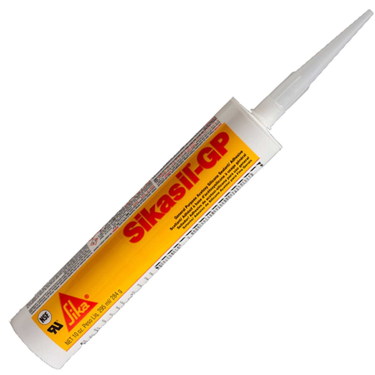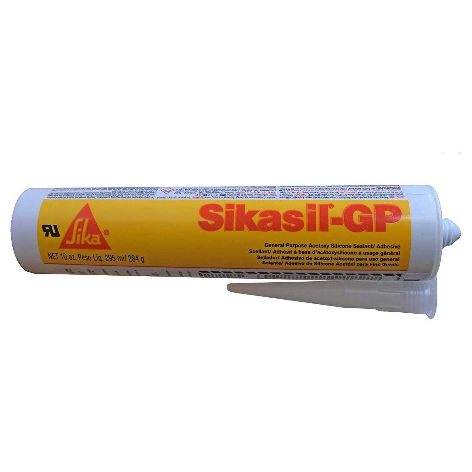 It has excellent adhesion to metals, glass, plastics and fiberglass. SikaSil GP has excellent weather stability, is solvent free and is mold and mildew resistant. Elongation of 570 Percent, 300 PSI tensile strength, 25 Minute tack time and a joint movement accommodation factor of +/-25 Percent, Highly UV resistant.