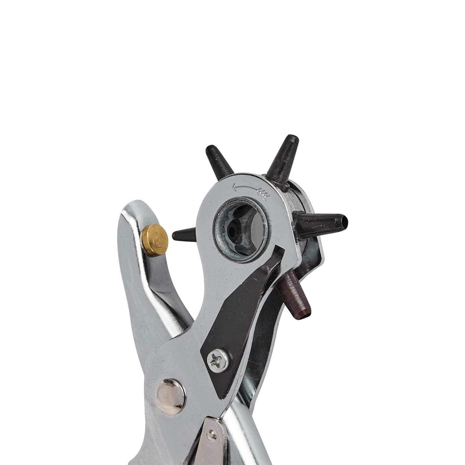 - Spring tension, self-opening Revolving Punch plier with lock lever