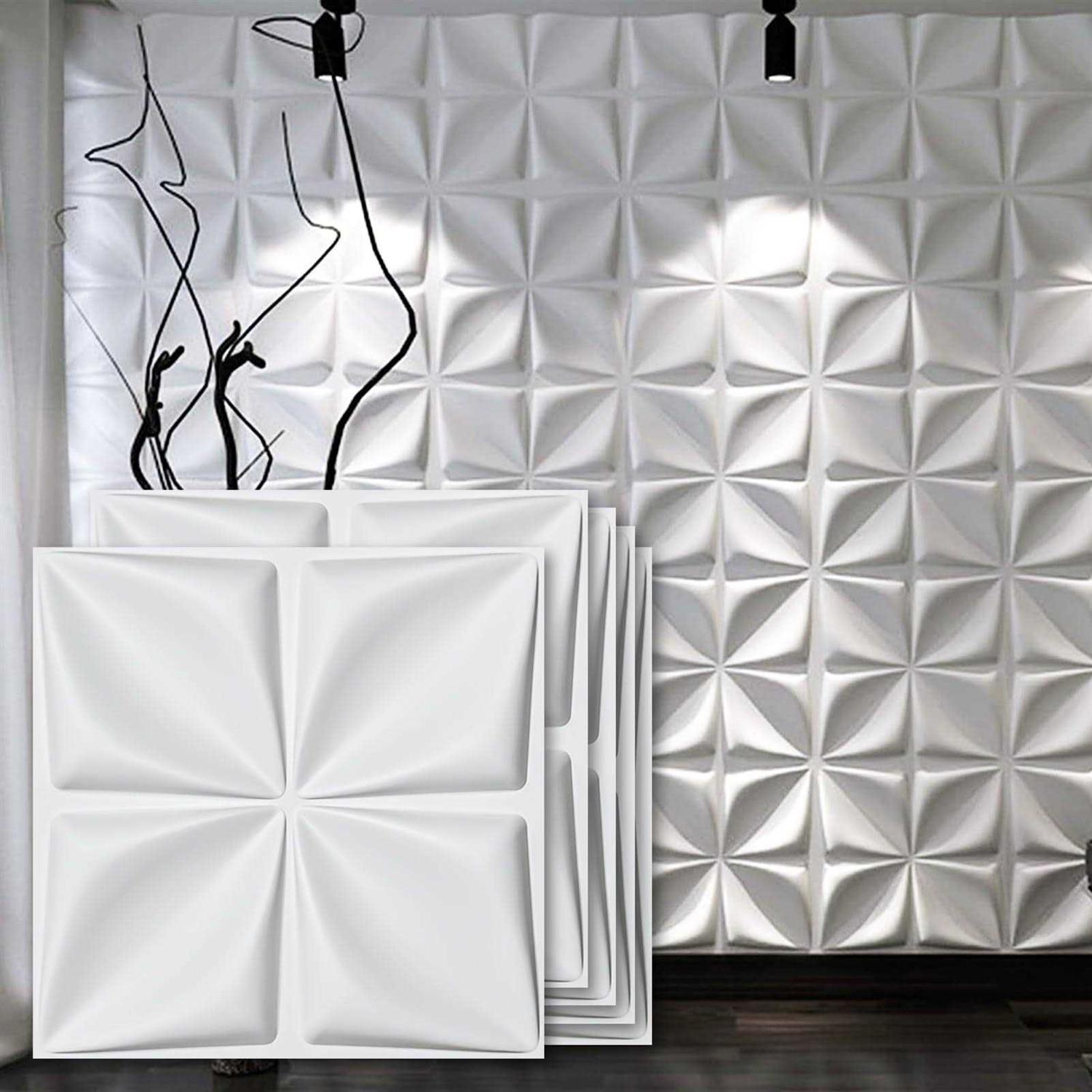 Art3d Decorative 3D Wall Panels Textured 3D Wall Covering, White, 12 Tiles 32 Sq ft