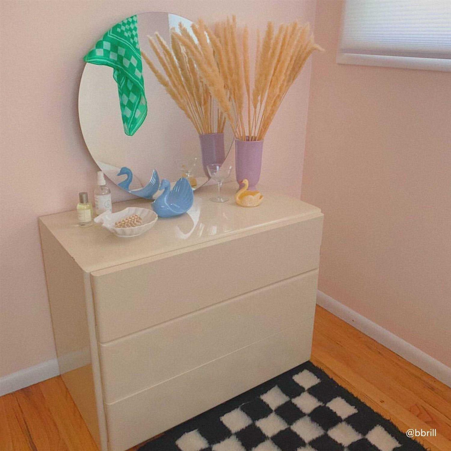 Light pink with a hint of peach premium exterior paint in durable semi-matte Standard Finish with low odor and low VOCs (volatile organic compounds).