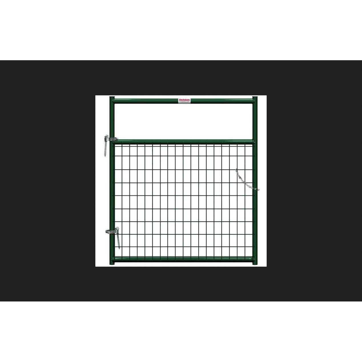 Behlen Country 40132042 Wire-Filled Gate, 50 in H Gate, 48 in W Gate, Green The wire-filled gates are filled with 2 x 4 in mesh and are ideal for yards, confinement of small animals or as a non-climb horse gate. Finished with our premium powder coat paint. Includes 5/8 x 6 in screw hooks and a chain latch.