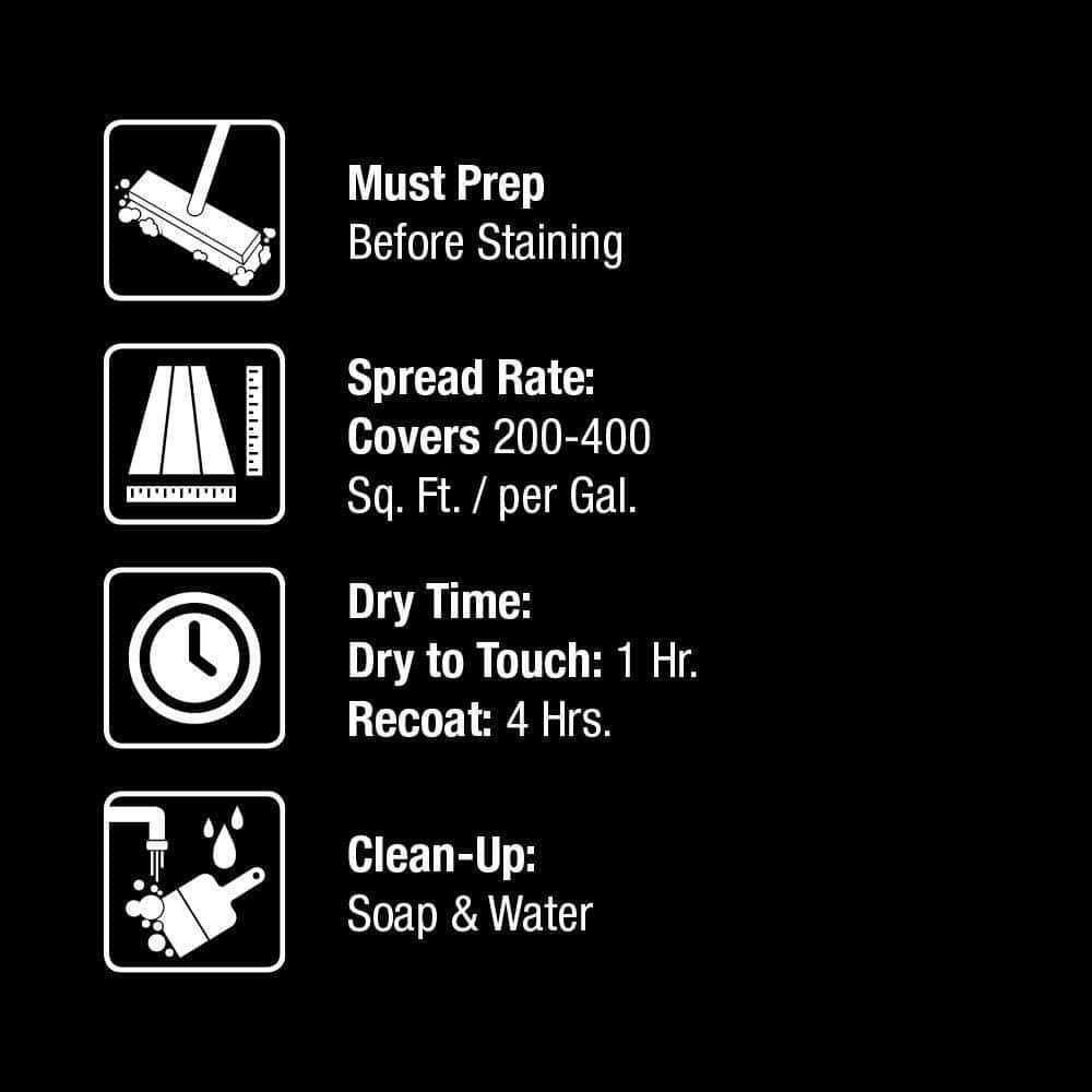 9 Stain protects all types of properly prepared, exterior wood surfaces. It is perfect for railings, shakes, shingles, siding, fences, furniture and planters. It resists scuffing, cracking, peeling and blistering.