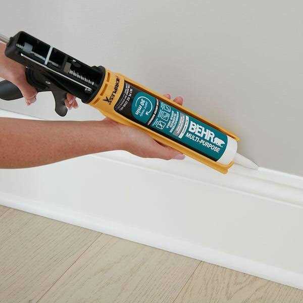 BEHR Multi-Purpose is a premium siliconized acrylic grade caulk designed for use on a wide variety of interior and exterior applications, including, but not limited to, trim, crown molding, baseboards, vents, doors and windows. It adheres to common building materials such as drywall, plaster, concrete, stucco, masonry, brick, fiber cement, wood, composites, metal, vinyl, stone and painted surfaces. Not intended for below-grade or water immersion applications. Color: White.