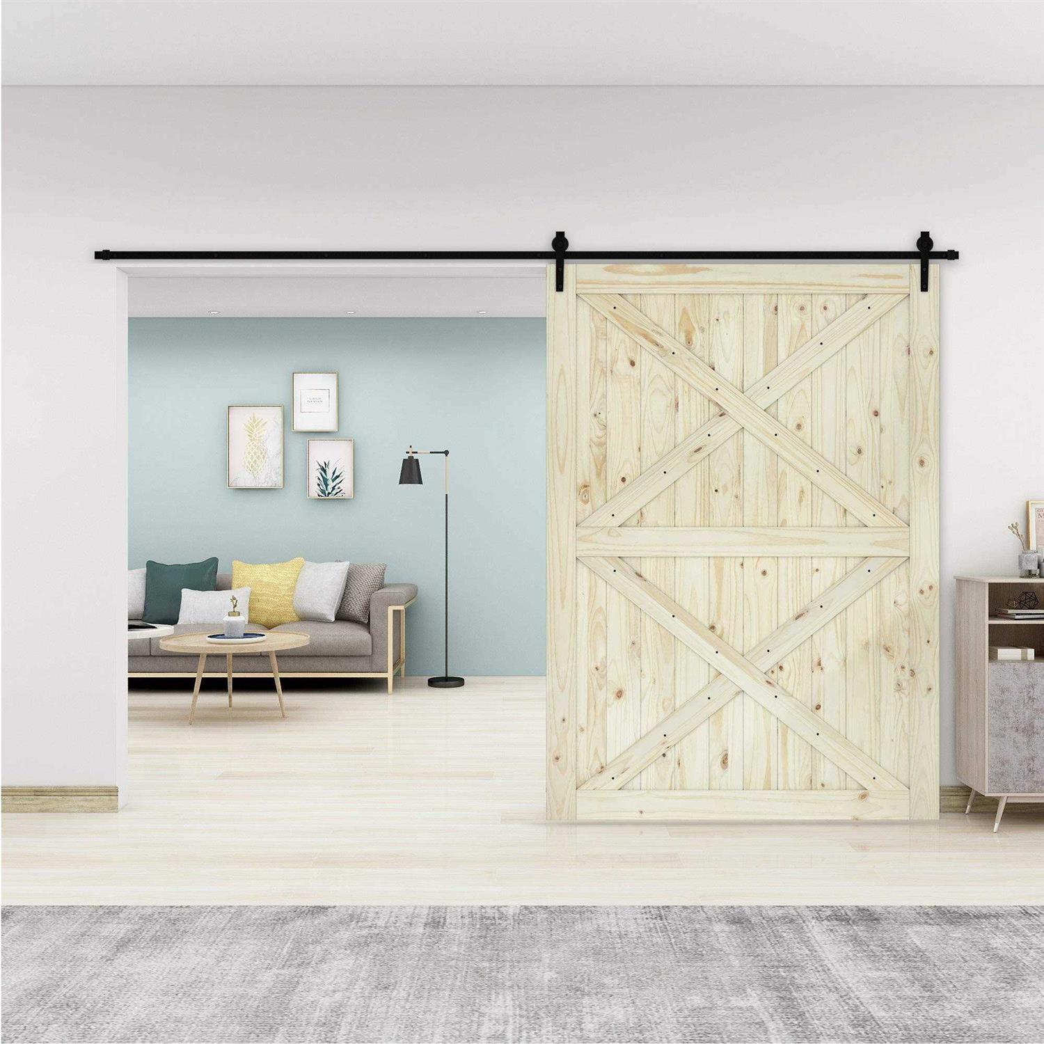 • Solid wood barn unfinished Pine door creates a rustic style Easy Installation