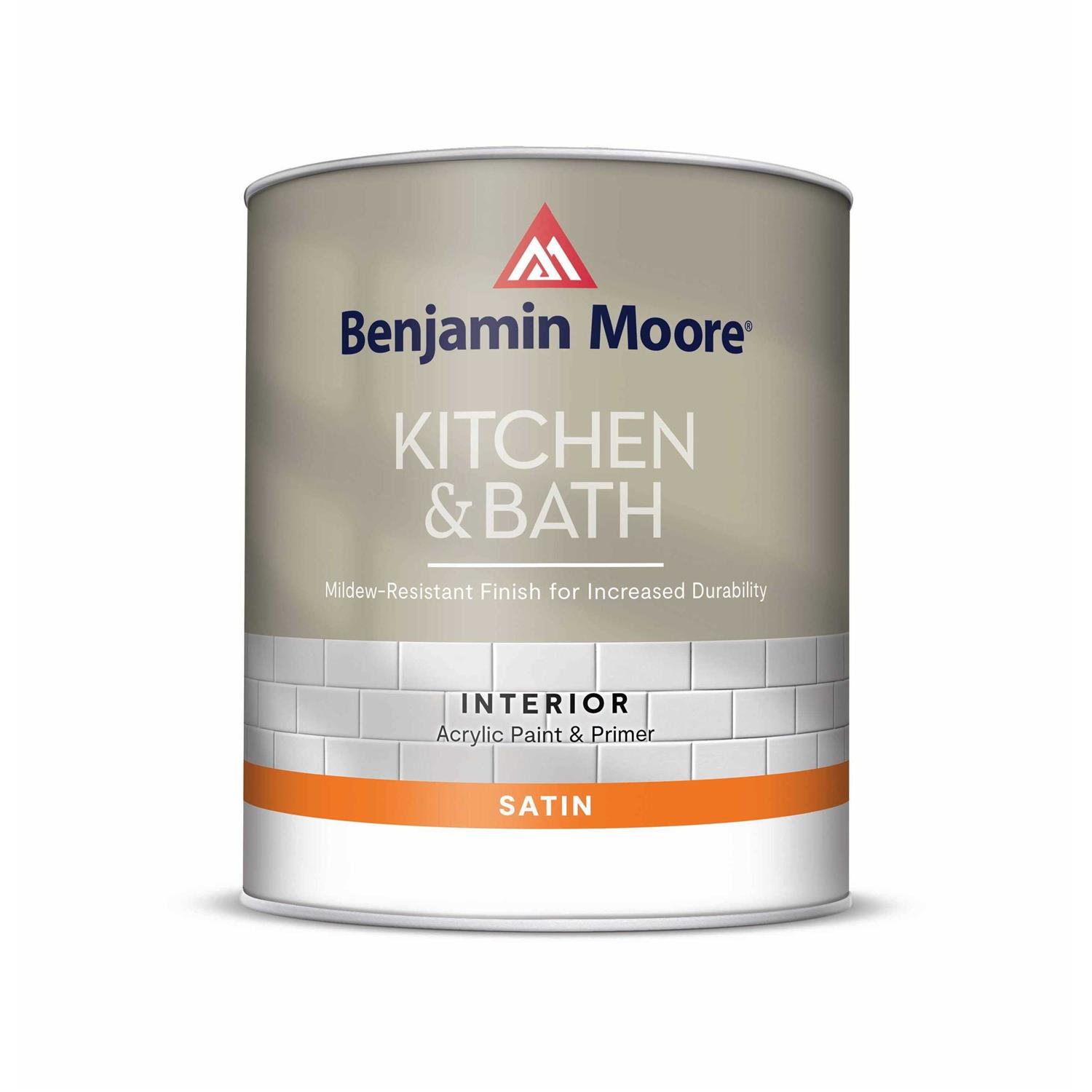 A top quality, 100% acrylic satin finish enamel designed for use in kitchens and bathrooms. Benjamin Moore Kitchen & Bath Satin Finish is ideal for use over clean surfaces and resists the growth of mildew even under humid conditions.