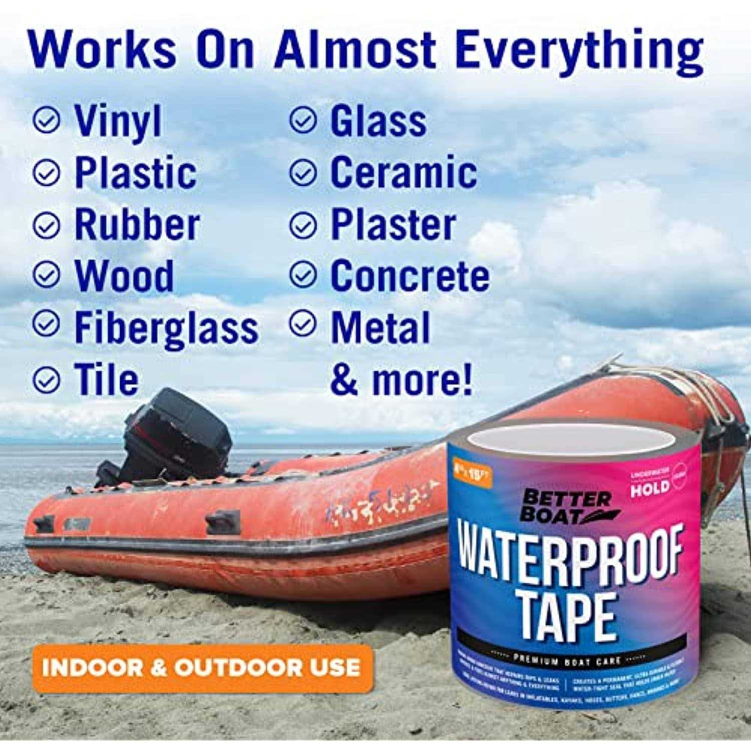 Our marine-grade clear waterproof tape can be used to repair just about anything, it adheres to most surfaces, even when wet and is perfect for repairs that will be submerged or exposed to water such as plumbing, inflatables, hoses, hvacs, windows and so much more! The extra wide 4 inch size makes it great for larger repairs and can be cut down for smaller ones, our industrial-strength waterproof tape creates a permanent, ultra-durable and flexible water-tight seal that holds under water and stands up to the elements.