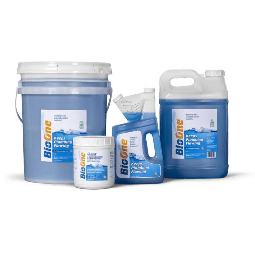 BioOne is a uniquely effective, 100% natural drain line, septic and grease trap maintainer. Applied on a regular basis after a drain or septic treatment, BioOne will help to maintain free flowing drains, eliminate odors and reduce the number of back-ups between scheduled pumping. BioOne does not contain enzymes, emulsifiers, or caustic agents and is safer for people, pets and pipes than many drain treatments.