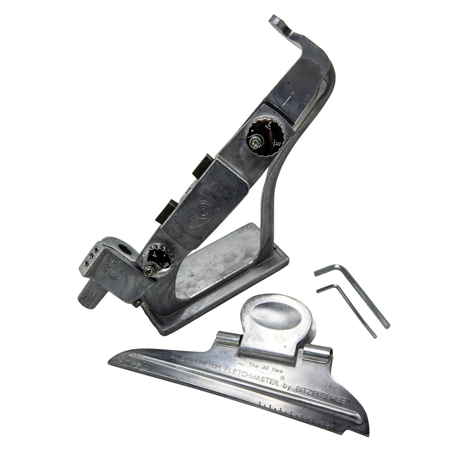 Bitzenburger jigs have set the industry standard for fletching tools for over 50 years. It is today’s only true precision fletching instrument used by every major manufacturer of quality arrows around the world. Unparalleled quality along with simplicity, design and precision sets this fletching tool in a class by itself. Designed by experienced archers for the perfectionist who wants the finest fletcher in the world for perfect arrow making. Features: Constructed of die cast alloy, this self-supporting fletching tool features a strong permanent magnet which allows for very precise and uniform placement of all feather and vanes. Self-centering shaft cradle will accept and center any size shaft available today. Large dials at the top and bottom of the magnet holder make it easy to adjust your angle of fletching within seconds, to fletch straight, offset or true right or left helical. Feather spacing of 3 fletch 120 degrees, 4 fletch 75 degrees x 105 degrees, and 4 fletch 90 degrees can be selected by a slight screw adjustment. The clamp is help at a 45 degrees angle so the arrow maker will have a clear view of the fletching at all times. All metal parts. Comes complete with wrenches and instruction sheet.