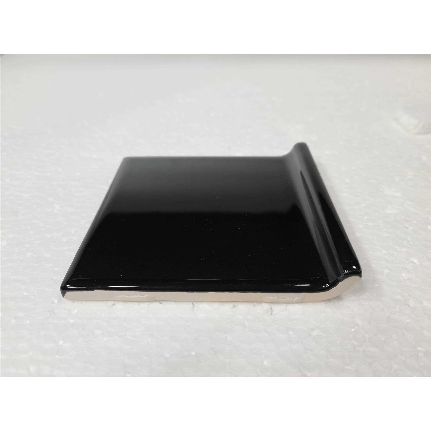 Black Ceramic Tile Cove Base 4.25 in Subway Square Wall Floor Transition Trim Rounded Curved Edge Gloss American Olean 5 Piece Box