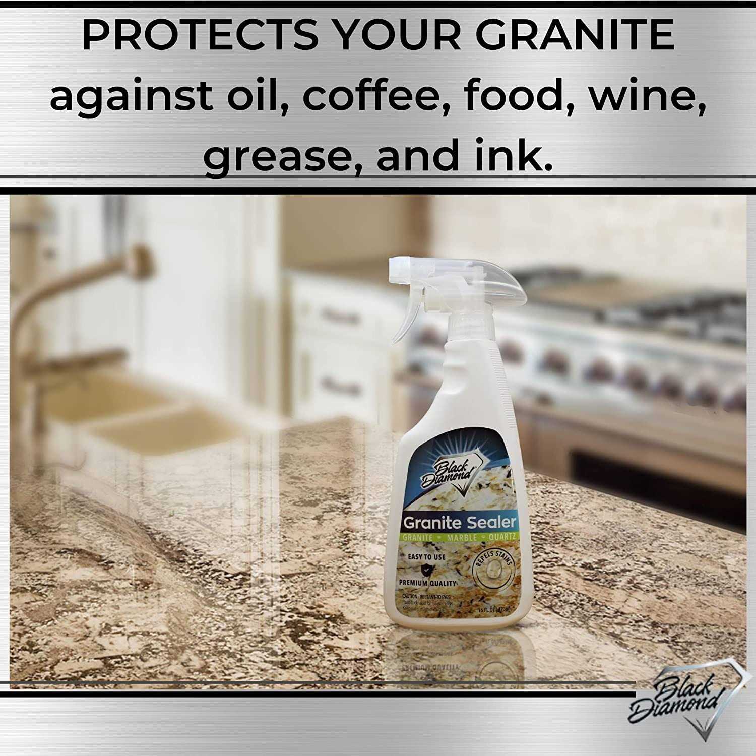 Black Diamond Stoneworks Granite Sealer: Seals and Protects, Granite, Marble, Travertine, Limestone and Concrete Counter Tops. Works Great on Grout,