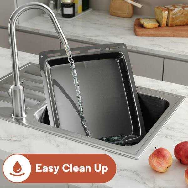 This heavy-duty oven broiling pan with a durable porcelain finish for exceptional resistance to corrosion and rust. Installing this accessory will not require tools or repair experience. Having this oven broiling pan helps you maximize the cooking space inside the oven, and it’s easy to slide in and out for quick access to baked goods.