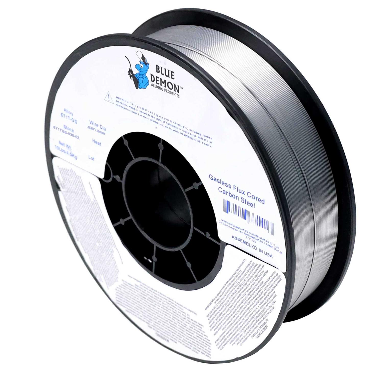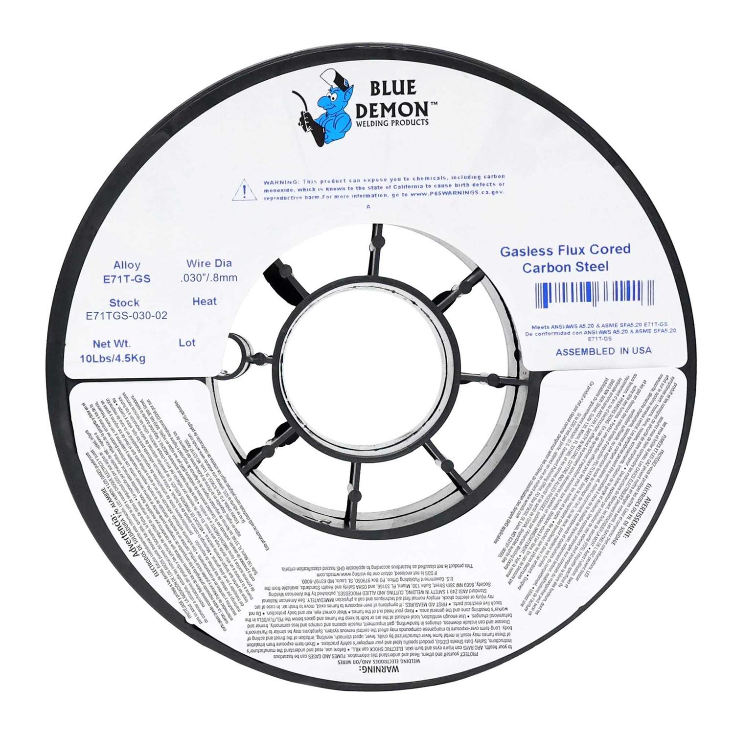 Easily and safely weld together stainless steel components with the Blue Demon 0.03-Inch Diameter Carbon Steel Flux Core Self-Shielding Welding Wire. This flux core welding spool includes 10 pounds of 0.03-inch diameter welding wire, perfect for carbon steel welding and soldering all galvanized steel and certain aluminized materials. The tubular design is self-shielding, requiring no shielding gas for safe and effective operation, making it ideal for a variety of applications around the home and workshop. This small-diameter spool is perfect for all-position welding and has excellent tensile strength and yield strength. The welding wire is designed for FCAW welding and is not designed for aluminum welds. Repair machine parts, weld together pre-fab construction kits, and more with this generous spool of carbon steel welding wire. Handily and securely join carbon steel in any way you see fit thanks to the Blue Demon 0.03-Inch Diameter Carbon Steel Flux Core Gasless Welding Wire.