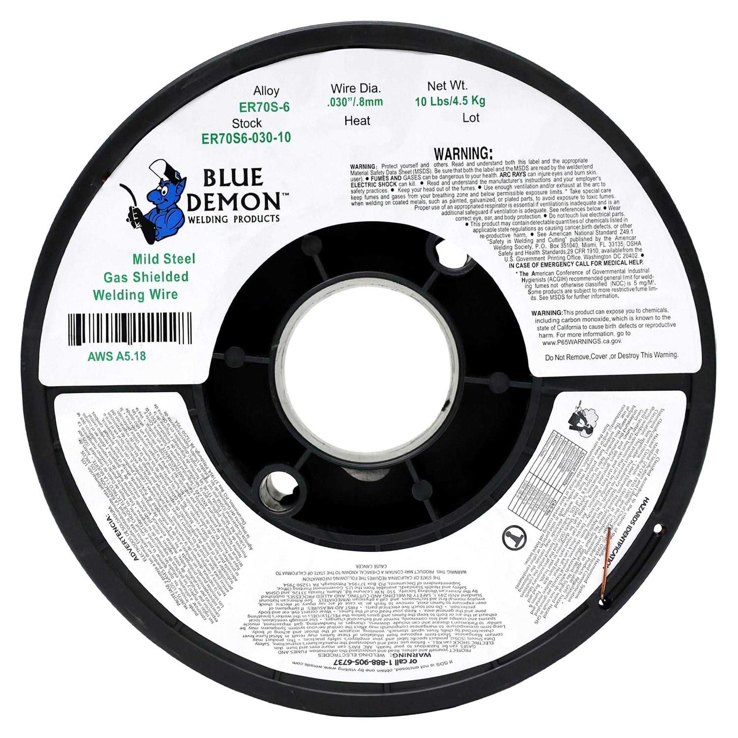 Blue Demon ER70S6 x .030 x 10 lb MIG/GMAW Carbon Steel Welding Wire, All Position, Low Spatter, Formulated to Provide Porosity-Free, X-Ray Quality