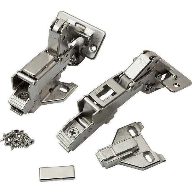 Designed for face frame cabinets, these nickel-plated hinges offer a large 170 degree opening capacity for greater access to cabinet drawers and pullout shelves. Snap-closing action and clip-on assembly provide added performance and installation convenience. 35 mm hinge cup hole. These 170 degree zero protrusion hinges allow pullout shelves and drawers to slide out without being obstructed by the door. Perfect for pantries and kitchen cabinets! a snap closing feature eliminates the need for additional catches and ensures secure closing action. 3-way adjustability, designed to operate on 3/4″ thick doors. Instructions include directions for overlays of 7/16″, 1/2″ or 5/8″. Clip-on feature lets you install/remove door without removing any hardware. Includes all mounting hardware backed by a Blum hinges are preferred throughout the world by cabinetmakers, kitchen manufacturers and consumers. The Blum clip hinge has become the industry standard for concealed hinges. All Blum hinges are backed with a lifetime guarantee. Blum is ISO 9001 certified which means that you are assured of consistent quality in every Blum hinge.