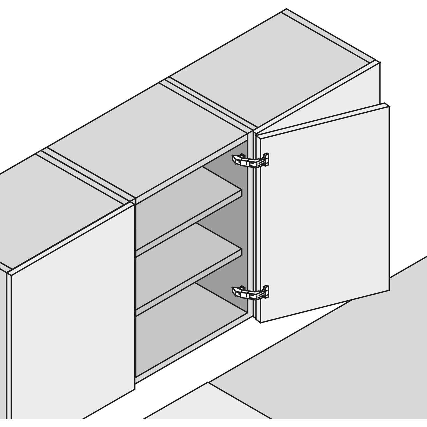 An all metal nickel plated hinge with 170° opening. It has Spiral-tech depth adjustment, tool-free door to cabinet assembly and removal plus 3-dimensional adjustment (with relevant mounting plate).