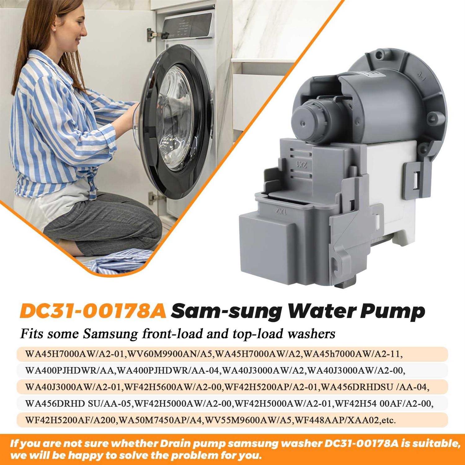 Drain Pumps by Blutoget. Details:” :DC31-00178A Washer Drain Pump for AC120V-60Hz, 80W. Drain pump motor DC31-00178A removes water from the washer during the drain portion of the cycle. DC31-00178A Laundry Washer Drain Pump Motor is a GENUINE OEM part. Package Includes:Includes 1 x DC31-00178A Washing Machine Drain Pump Motor Fixes Symptoms: Washer making noise Washer will not drain Washer pump not spin Washer leaks Clothes are wetter than usual Simple To Install:Please disconnect the power source and water source from your washing machine before replacing the part. To complete this multi-step repair, you’ll need a Philips screwdriver, small flathead screwdriver, bucket, towel, pliers, and vice grips. Take photos as needed to ensure proper reassembly. Following along with an online repair video is the easiest way to ensure proper DIY installation of a Blutoget DC31.