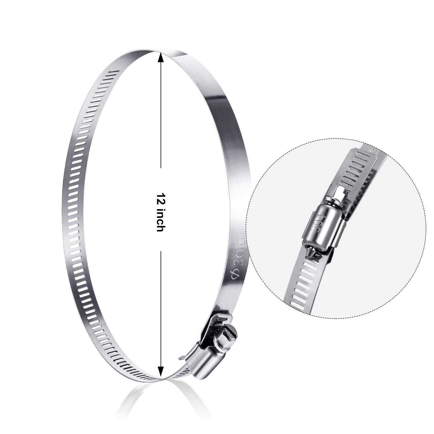 Boao 4 Pieces Adjustable 304 Stainless Steel Duct Clamps Hose Clamp (12 inch)