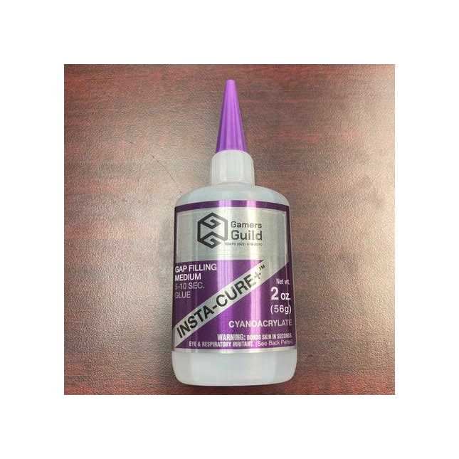 Awesome bottles of hobby glue perfect for hobby and miniature assembly. Cyanoacrylate is also known as CA Glue or Superglue. Maxi-Cure (Extra Thick, similar to “Gel” superglues) is for when you need maximum hold and don’t mind a little bit of extra bulk in the consistency of the glue. This is not recommended for small miniatures, but works great for basing, attaching miniatures to bases, gap filling, and terrain construction. It is especially recommend for MDF terrain assembly, since thinner glues will be absorbed into the wood faster and provide less hold. Insta-Cure+ (Medium Thickness) is perfect for most hobby modeling and miniature assembly. This glue does not have any of the “Gel”, stays thin and dries quickly. Insta-Cure+ is recommended for most miniature assembly. Insta-Cure (Extra Thin) is for when you need to glue two smooth surfaces together. This glue gets the maximum holding strength but is so thin that it will only work when your surfaces are flush. As such, it is a good choice for plastic models, and repair work. Insta-Cure is most definitely not recommended for use with MDF. Insta-Set (Accelerant) is used to cause CA glue to set instantly on contact with minimal or no waiting. This product requires another Superglue and causes it to dry (set) faster. This is perfect for when you are having trouble holding the parts together without movement that can prevent them from setting. (the most common cause of superglue not “holding”. It can also be used for gap-filling. Un-Cure (Debonder) is used to dissolve and change Superglue back into a liquid allowing you to clean up excess dried glue or disassemble a model.