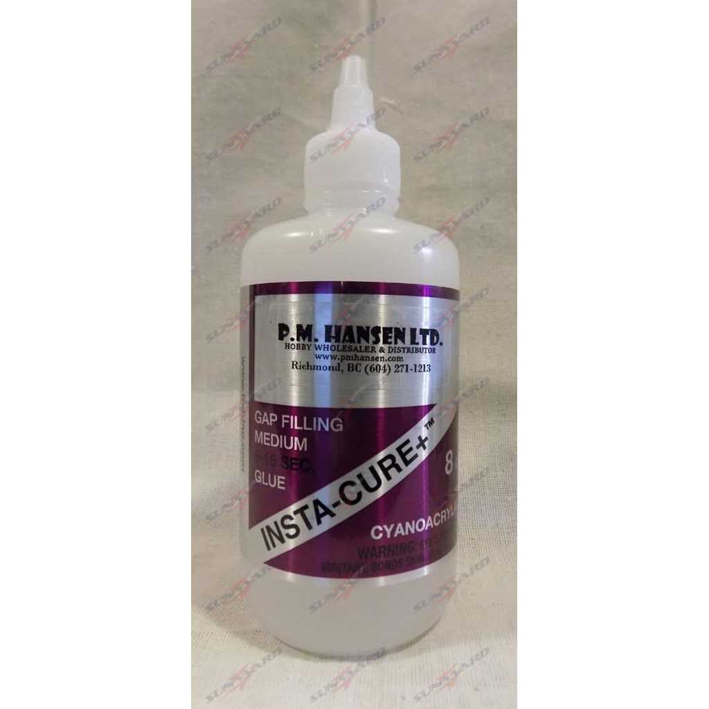 BSI109 Insta-Cure+ Gap Filling 8oz CA Adhesive Glue Bob Smith Industries Insta-Cure+ Gap Filling 8oz CA Adhesive Glue by Bob Smith Ind INSTA-CURE+ is a higher viscosity CA for loose fitting joints in which the adhesive must bridge gaps. Normally, the thicker CA is applied to one surface and then the parts are held tightly together for about 5 to 15 seconds. For large surface areas, including those with close fitting joints such as laminations, INSTA-CURE+ should also be used. To prevent premature curing, do not spread the glue into a thin film. Lay down a serpentine bead with about 1in. Separations on one surface, then assemble the parts, letting the pressure spread the CA out. A thick, flow resistant super glue.