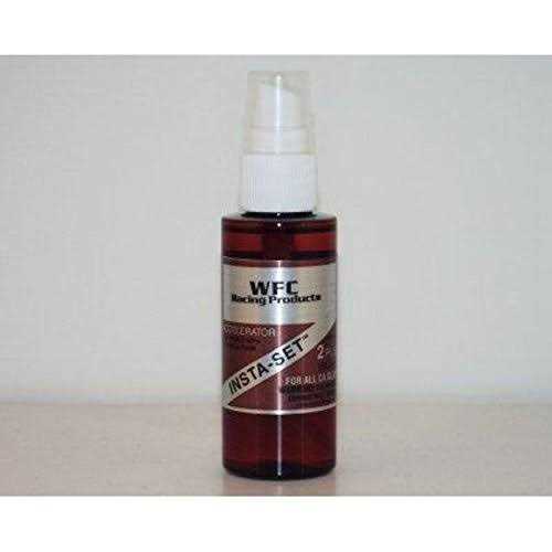 Bob Smith 151 Insta-Set 2oz AcceleratorThis is 2oz bottle of INSTA-SET is a catalyst which acts as an accelerator that allows CAs to quickly cure in thick layers by enhancing the alkaline conditions during polymerization. FEATURES: Formulated with a strawberry scent and activates CA in 6 to 8 seconds without any degrading of the CAs strengthWill not craze most plastics even clear plastic and white foam. Forces the immediate cure of all cyanoacrylates Expands gap filling ability Permits structural fillet forming Solves most tough-to-bond combinations of materials Safe for use with plastics YOU WILL RECEIVE: One bottle of 2oz bottle of INSTA-SETOne pump REQUIREMENTS: Use with CA glues SPECIFICATIONS: 2 fl oz. (59.1ml)- Insta-Set 2oz CA Adhesive Accelerator (Spray Bottle)- INSTA-SETTM is a catalyst which acts as an accelerator allowing CAs to quickly cure in thick layers- MADE IN THE USA