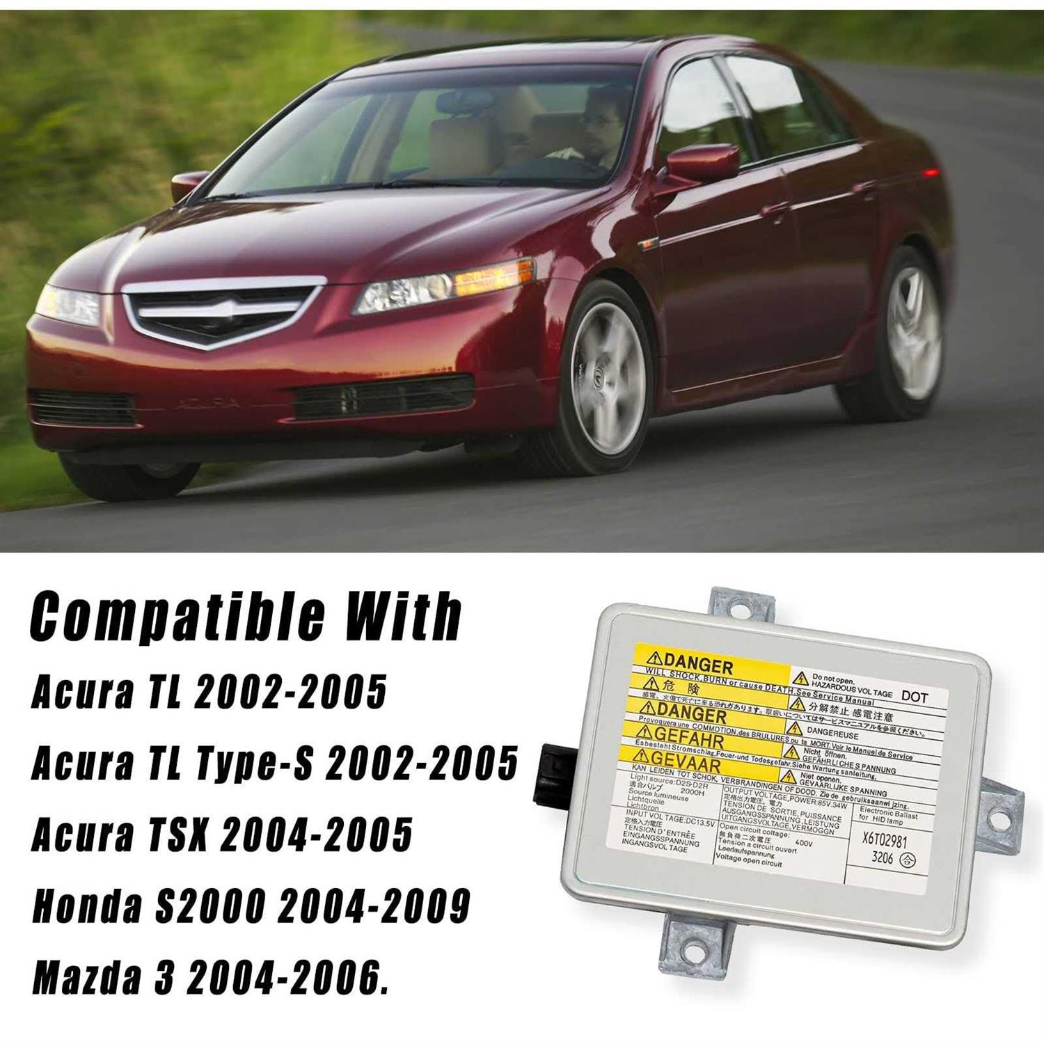 Compatible with: Acura TL 2002-2005 丨 Acura TL Type-S 2002-2005 丨 Acura TSX 2004-2005 丨 Honda S2000 2004-2009 丨 Mazda 3 2004-2006. Replaces Part Number: X6T02971, X6T02981, X6T02993, W3T10471, W3T12472, W3T14371, 33109-S2A-J01,33109-S0K-A02, 33119-SCC-003, 33119-S0K-A10. Easy installation: Direct plug and play. No coding modification is required. Feature: This Ballast Module is made of High-quality aluminum, which has good heat dissipation and shock resistance. Give you safer driving at night.