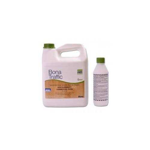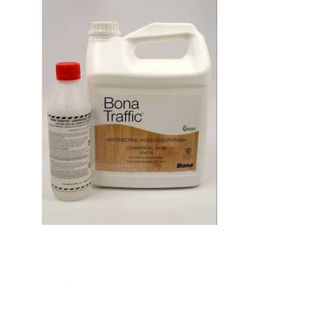 water based 2 componment Bona Traffic is a waterborne, commercial and residential hardwood floor finish. It is the industry’s premium finish for durability and beauty. Designed specifically for the unique demands of heavy-traffic commercial and residential hardwood floors, Bona Traffic’s advanced formula provides the ultimate in durability, outperforming any finish in the industry – moisture cure, solvent-based, oil-modified or other waterborne finishes. GREENGUARD certified for indoor air quality. Benefits Exceptional build with excellent flow and leveling UL Classified for slip resistance Excellent adhesion, recommended for recoating “prefinished UV” hardwood flooring Two-component, comes with hardener. VOC Compliant Recommended Uses Commercial and residential use shopping malls restaurants offices retail stores theater stages hospitals schools nursing home Recommended System Apply one Coat Bona sealer or Bona stain and 2 coats of Bona Traffic. Follow label directions. Adding a third coat of Bona Traffic is recommended in heavy-traffic commercial and residential areas. Coverage 350 to 400 Square Feet per Gallon