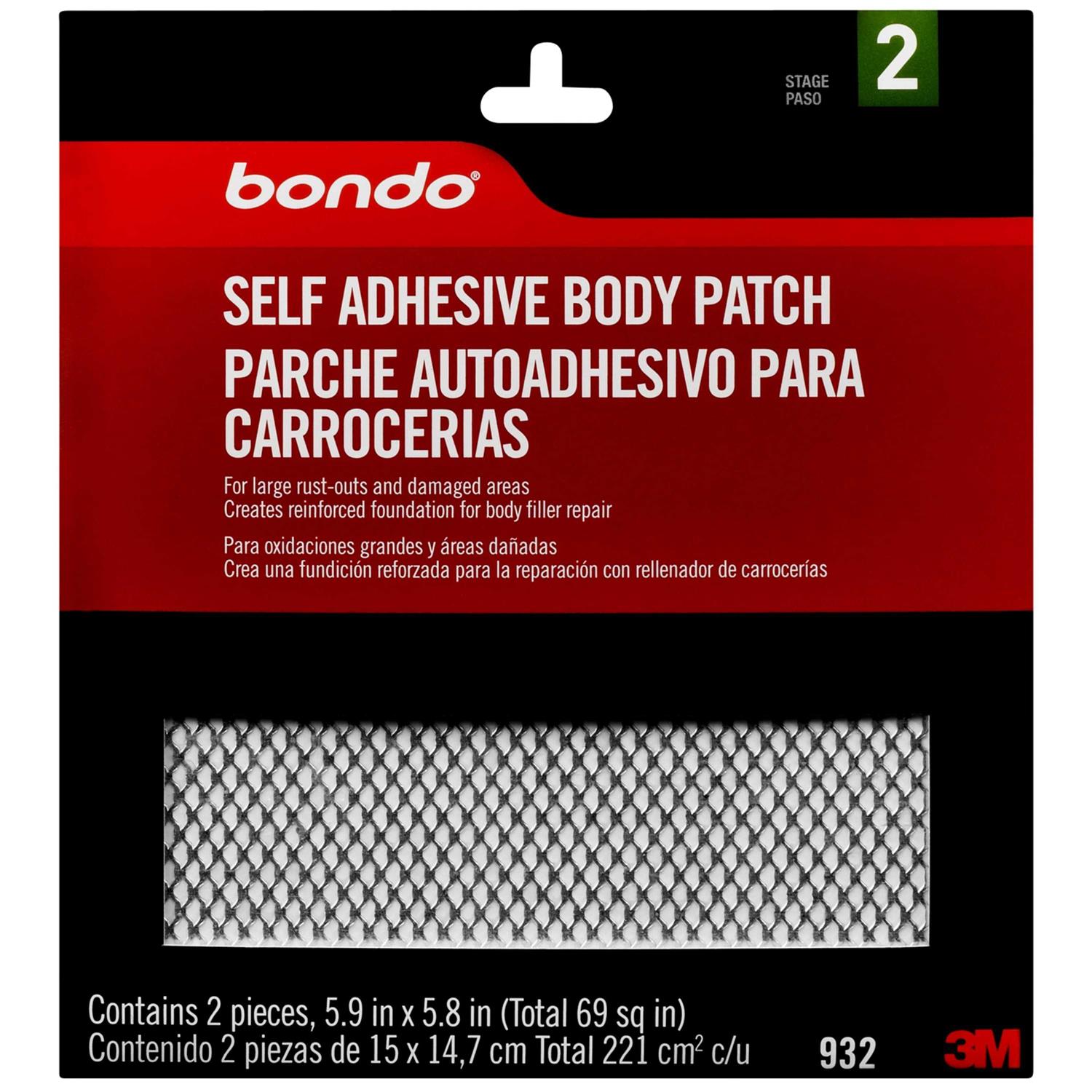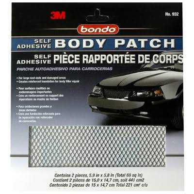 Make patchwork easier with Bondo Self Adhesive Body Patch on hand. When you’re filling in rust patches on auto bodies, Bondo is the ultimate go-to for lasting results. 3M Bondo 932 body patches make DIY repairs last even longer. The special screen provides a firm, metal reinforced contour foundation for Bondo body filler and fiberglass resins when applied directly over the patched area. The flexible patches can be cut, folded and shaped for effective placement; rust and weather resistant double-sided adhesive makes affixing a breeze. Each pack contains two sheets; Bondo automotive body filler is sold separately.