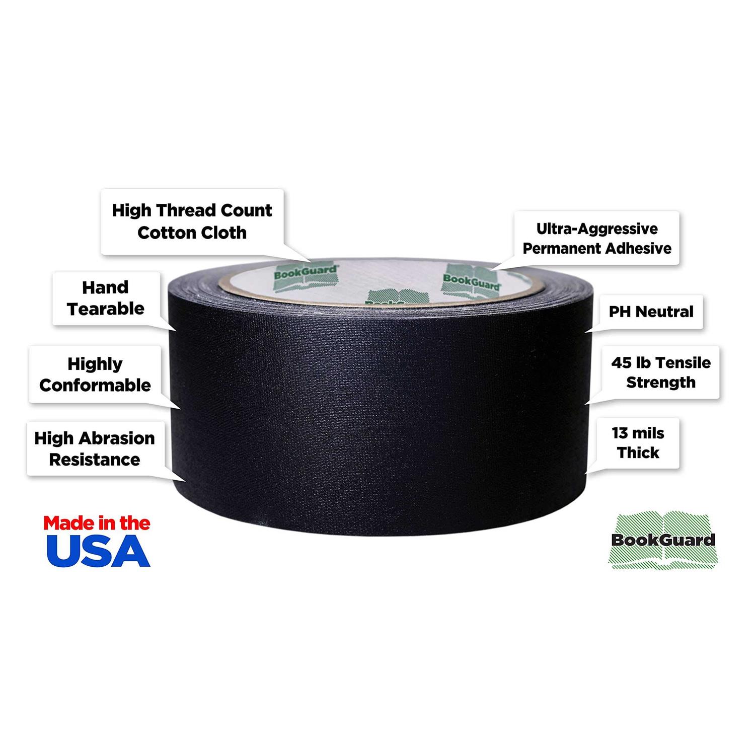 2″ Black Colored Premium-Cloth Book Binding Repair Tape | 15 Yard Roll BookGuard