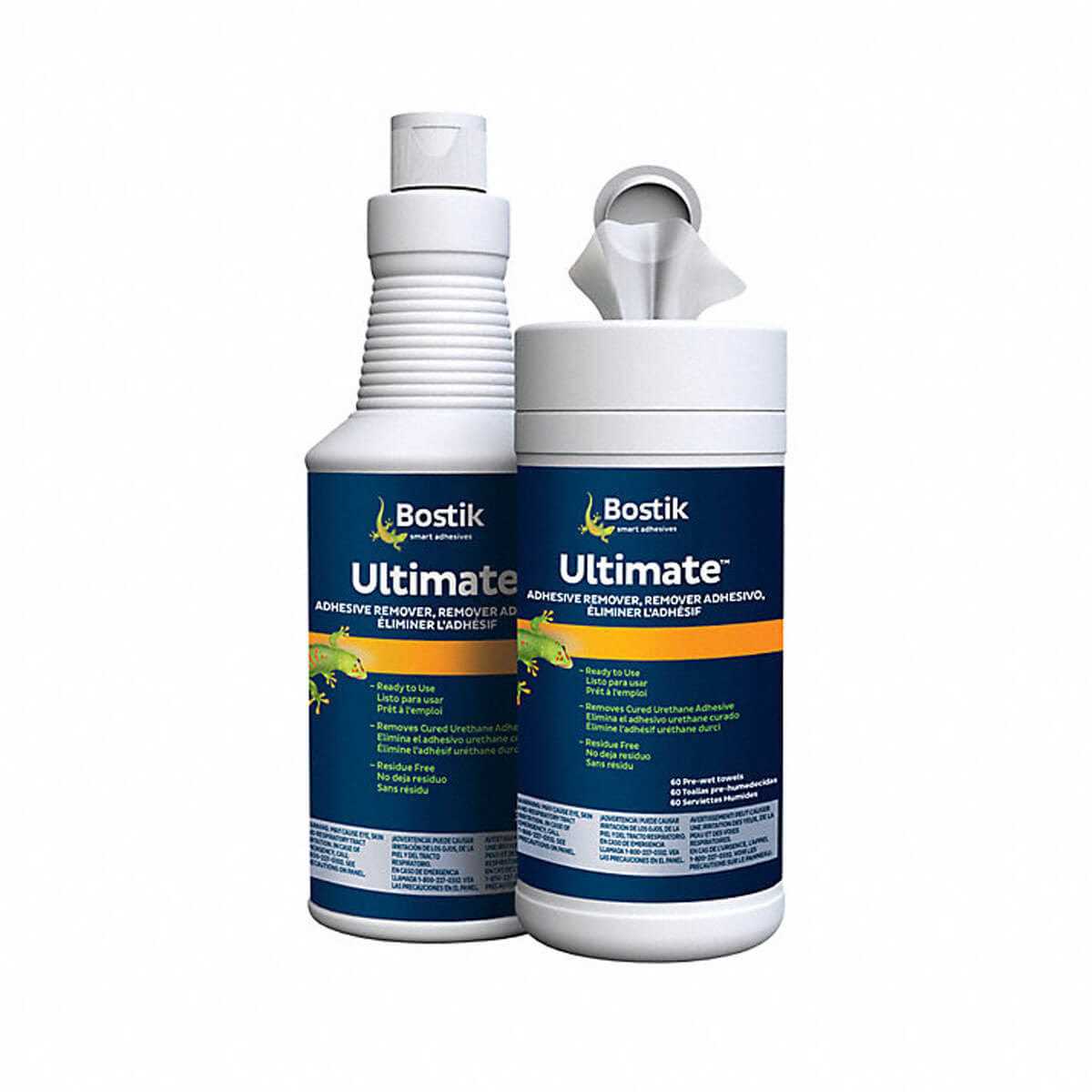 Bostik Ultimate Adhesive Remover is formulated to remove wet and cured urethane adhesive from pre-finished (non-wax) wood flooring and tools. This adhesive remover is a low-odor, water-rinseable, readily biodegradable solution. This remover is ideal for removing wet and cured urethane adhesive off of the surface of pre-finished (non-wax) wood flooring. Available in liquid form or pre-soaked wet towels.