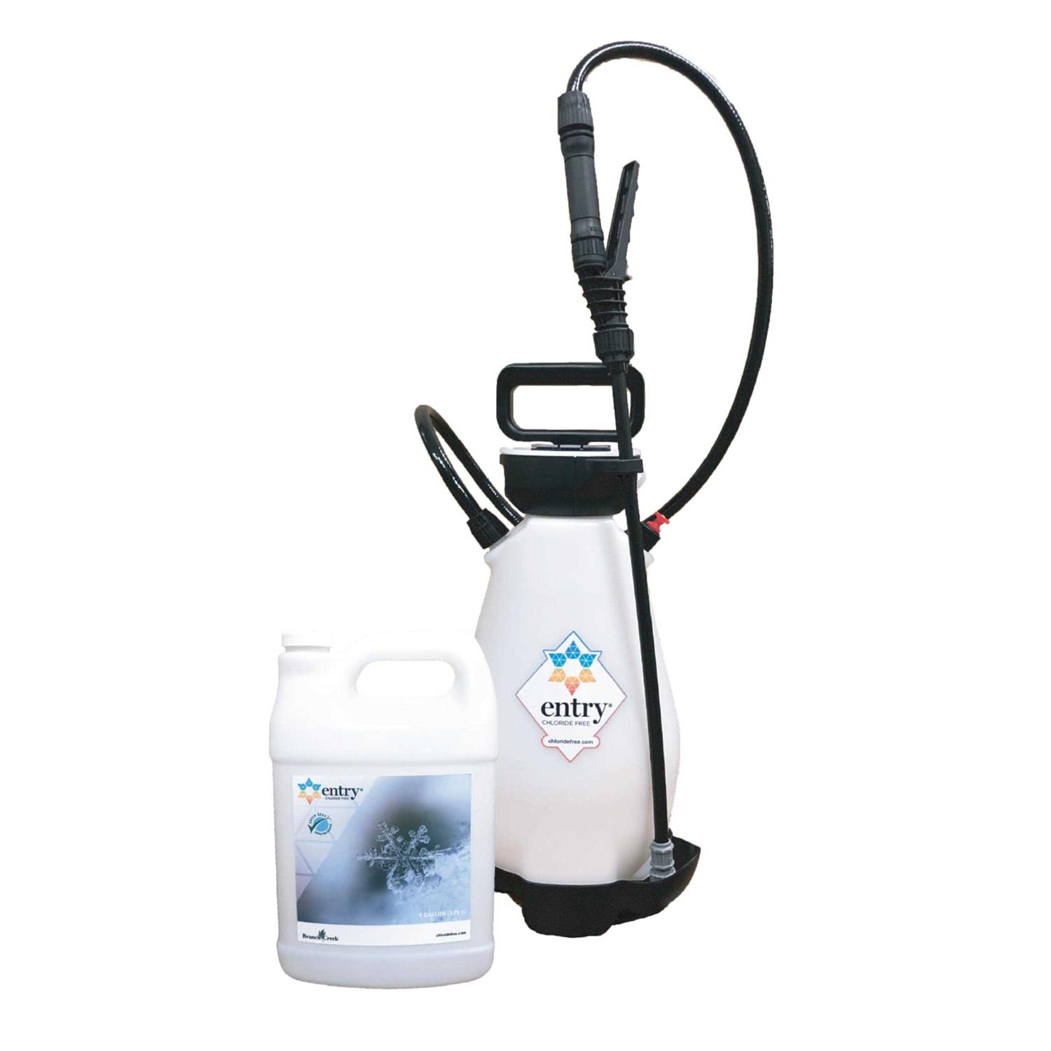 • One gallon (3.79 liters) of Entry will provide comparable coverage to 100 pounds (45.36 kg) of traditional ice melt.