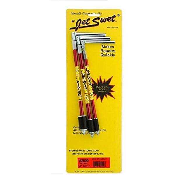 Brenelle Jet Swet 2000 Small Kit Includes 1/2″, 3/4″ and 1″ Original Plumbing Plug ToolsJet Swet tools allows you to solder and glue pipes without draining the entire water system. Puts you in immediate control of your work. Works with FULL PORT Gate and Ball Valves. This kit is ideal for the plumber and maintenance personnel that deal with the smaller diameter standard commercial and residential sizes of pipe. Jet Swets are made from the highest quality steel and aircraft aluminum. The Jet Swet gasket is a special EPDM/Silicon composite, made to withstand the intense heat of soldering and braising.