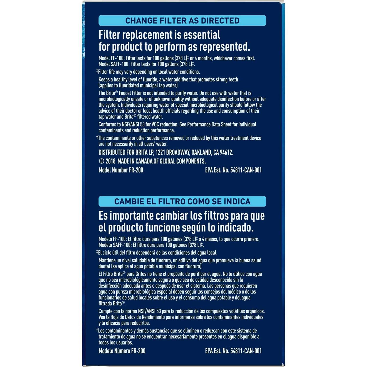Perfectly matches the coloring and design of the white Brita On-Tap Faucet Filter System. These faucet filter replacement cartridges will ensure your faucet filter system continues to pour clean and fresh tasting water, directly from your tap! Reduces up to 99% of impurities, including chlorine and lead. Tested and certified by NSF International and the Water Quality Association (WQA) to meet or exceed NSF/ANSI Standards 42 & 53. For best tasting results, it is recommended that you replace the filters in this system every four months or 100 gallons, based on average household usage.