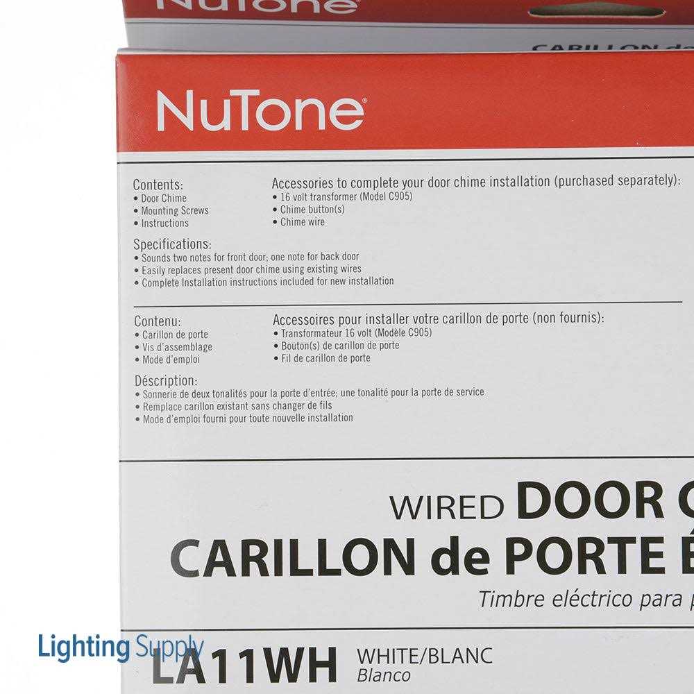 Nutone Decorative wired door chime has KB10 ding and KB10 ding-dong ringing modes. It features voltage rating of 16-Volts. Chime has white textured finish that blends effortlessly with any decor offering durability. It offers surface mounting. This door chime measures 8.268-Inch x 2.386-Inch x 5.492-Inch. It has individual tones for up to two doors.
