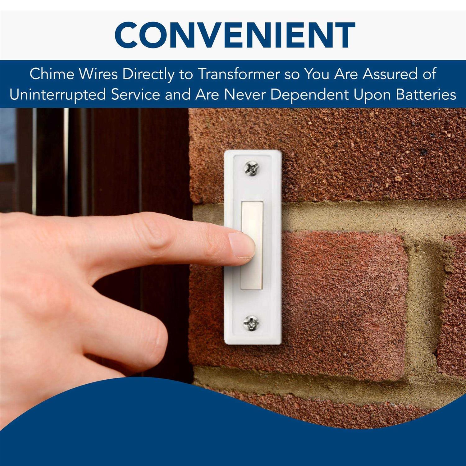 - One 16-volt, 10VA transformer needed for a single chime